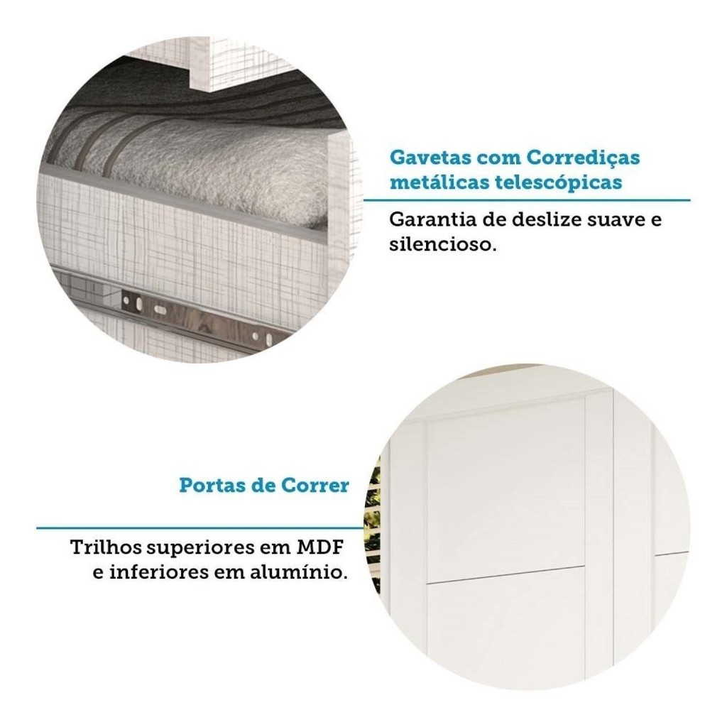Guarda Roupa Casal 160cm 2 Portas de Correr 100% MDF Boldina Espresso Móveis Branco
