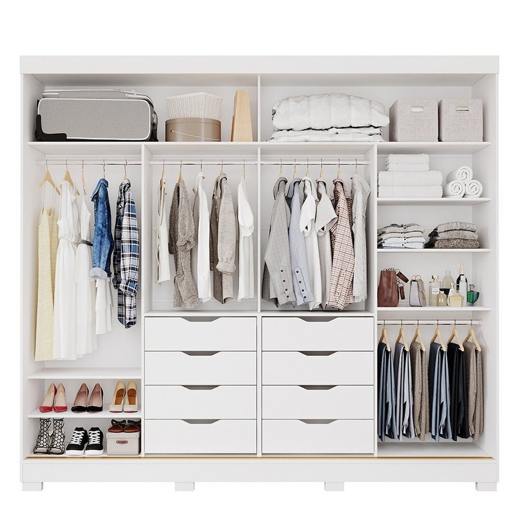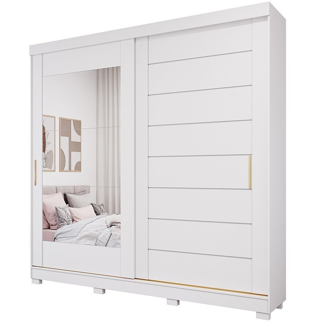 Guarda-Roupa Casal 264cm 2 Portas de Correr com Espelho e Pés 100% MDF Siena Espresso Móveis Branco