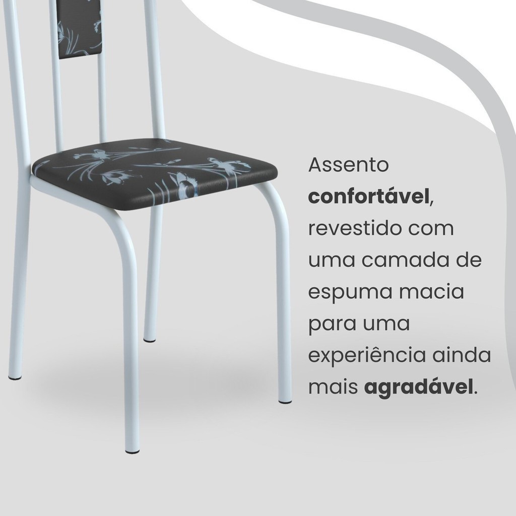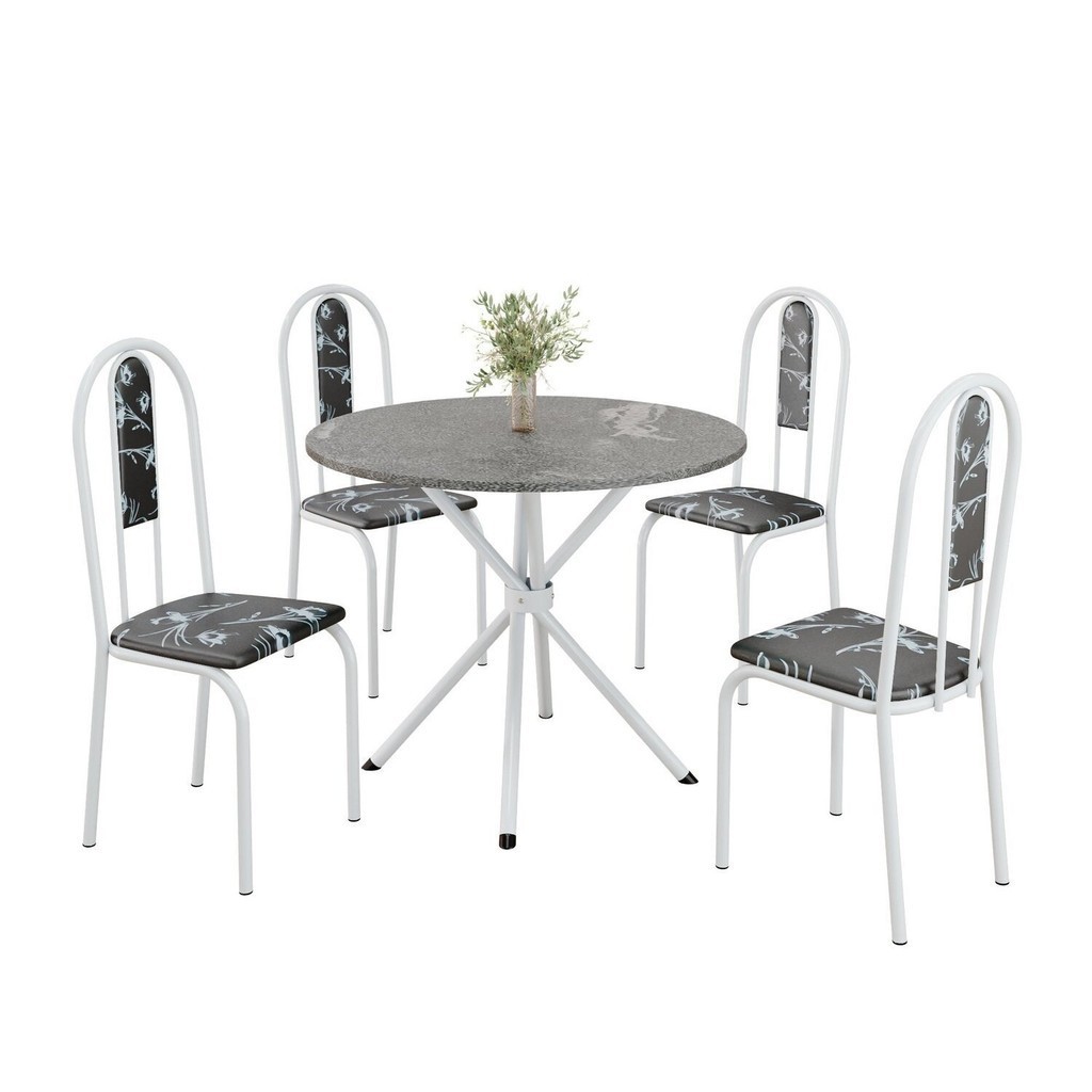 Conjunto Sala de Jantar Mesa Redonda 70cm Tampo Granito Topázio 4 Cadeiras Linda Yescasa Preto Floral/Branco