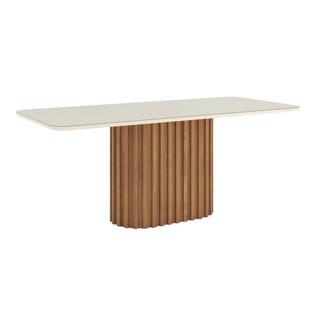 Mesa de Jantar 200x90cm Tampo Vidro/MDF Canto Arredondado Solana 200