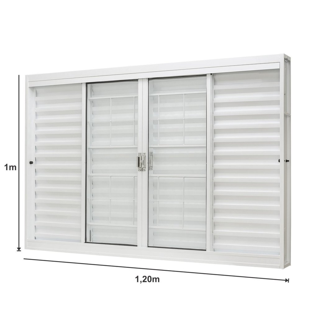 Janela de Aço Veneziana Central 100x120cm 6 Folhas com Grade Quadriculada e Vidro Liso Ramassol