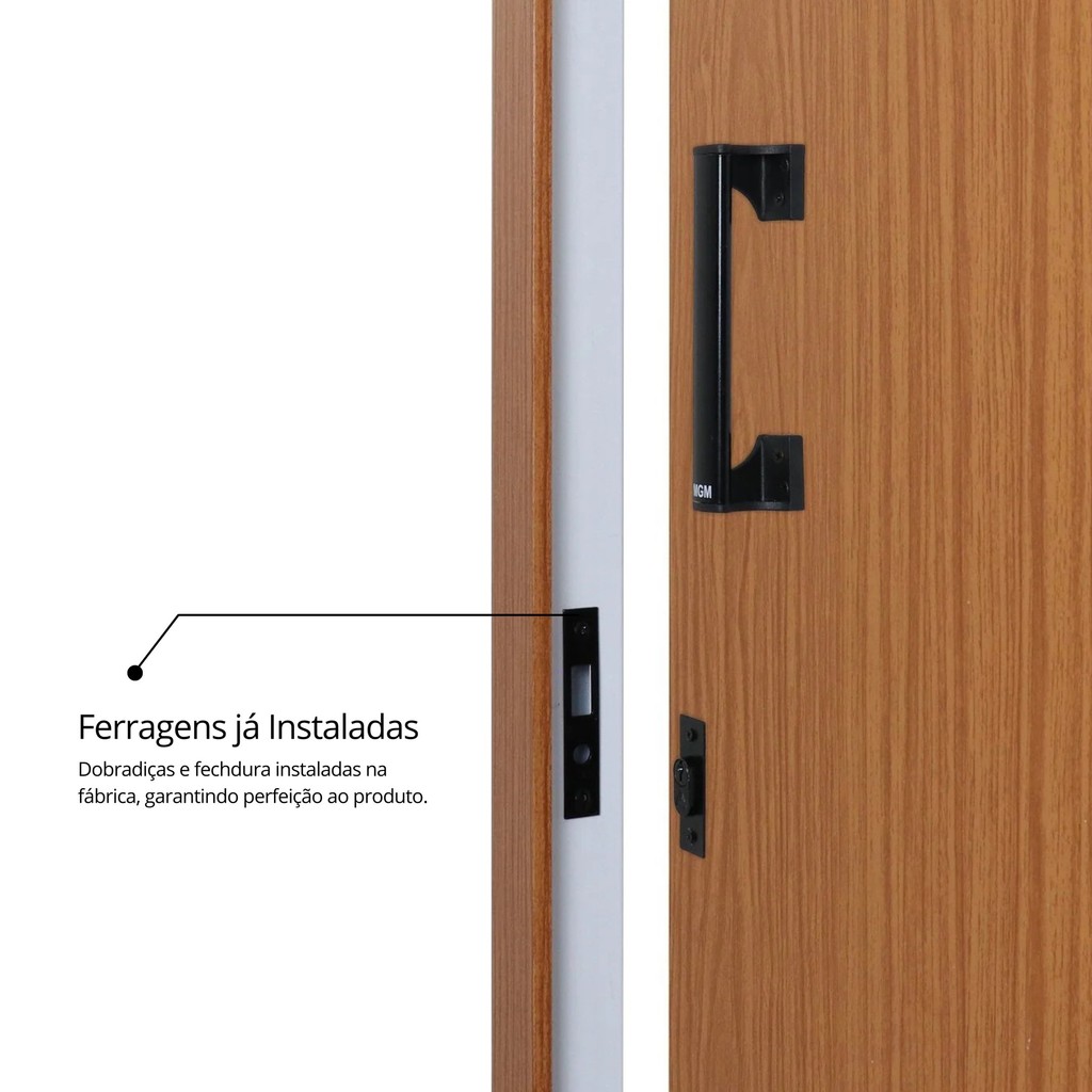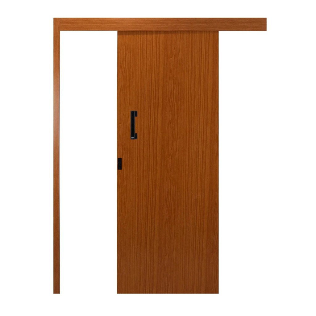 Porta de Correr Madeira 215x70cm Sobrepor Reversível Melamínico MGM Abertura Direita Mogno