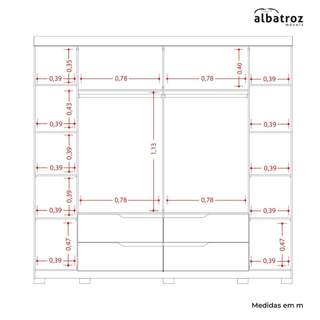 Guarda-roupa 06 Portas e 04 Gavetas Doble Casal Cinamomo/Off White