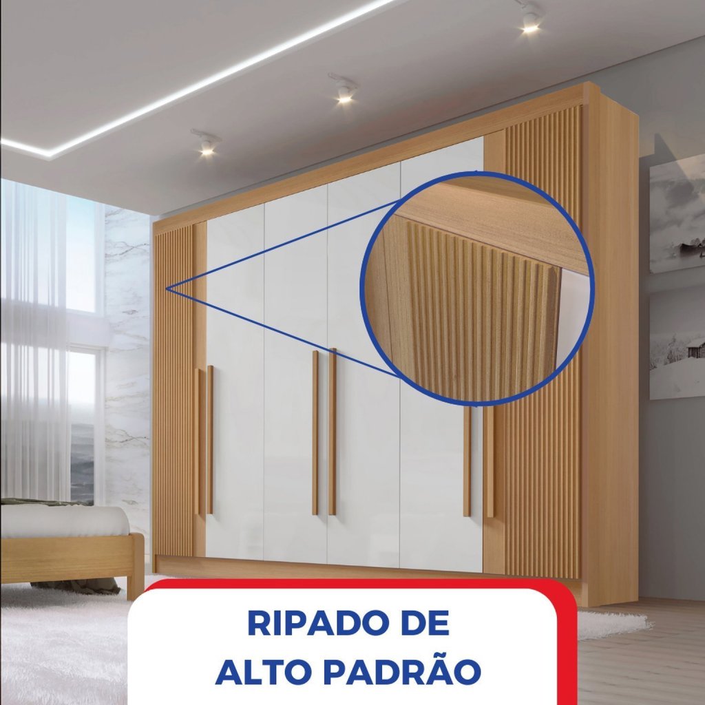 Guarda-roupa Casal MDF Ripado 6 Portas 6 Gavetas Paris Plus Cinamomo/Off White