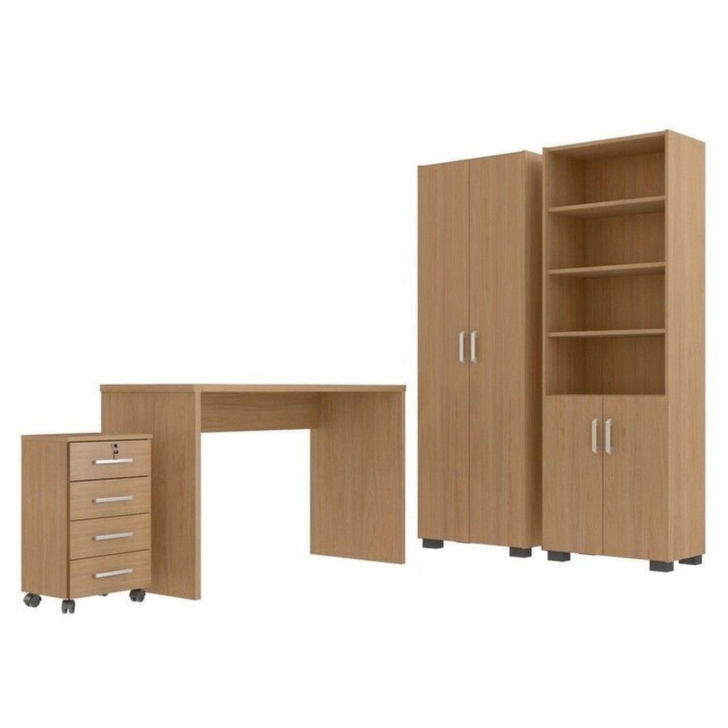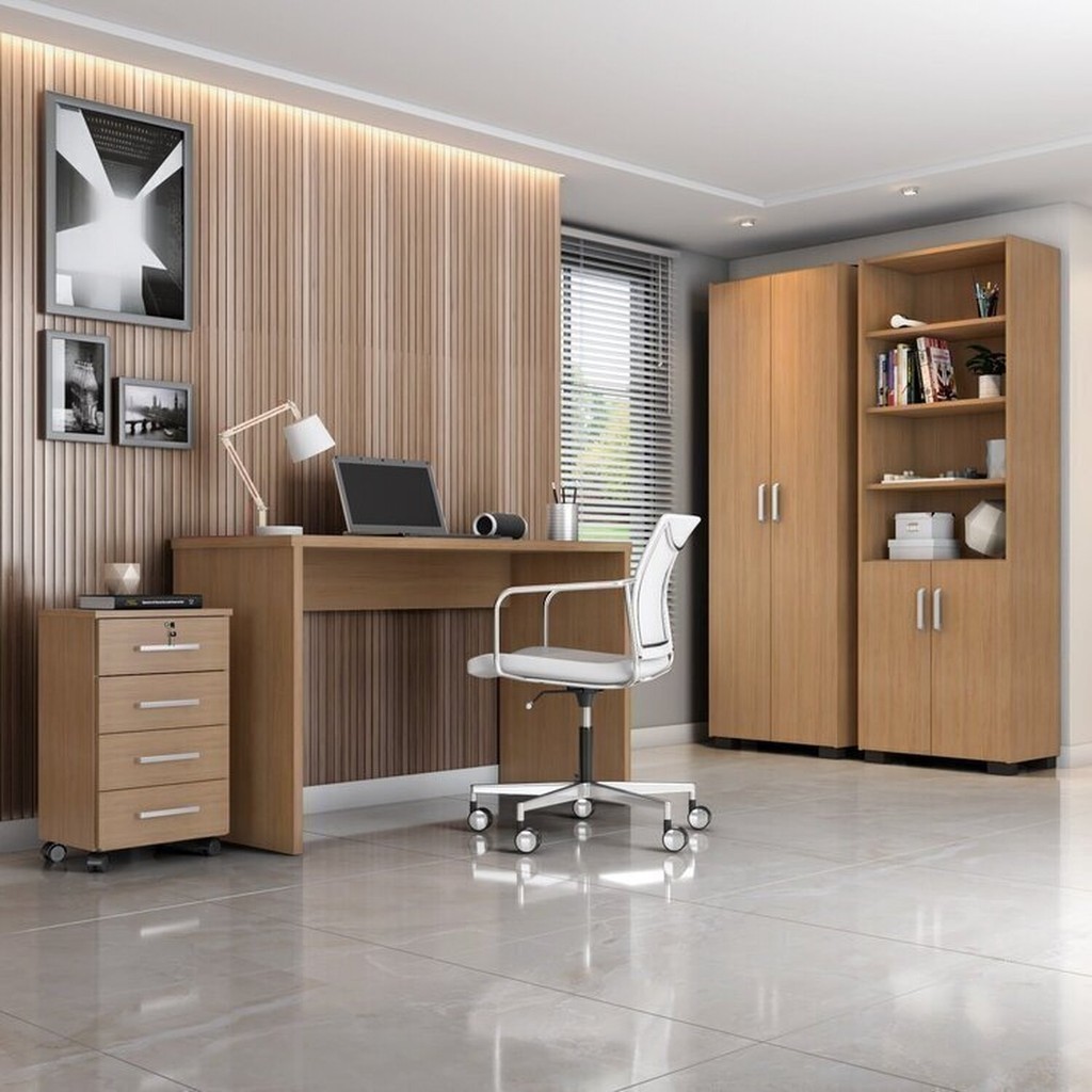 Conjunto para Escritório 4 Peças com Escrivaninha Gávea 1 Gaveteiro e 2 Armários Espresso Móveis Marrom