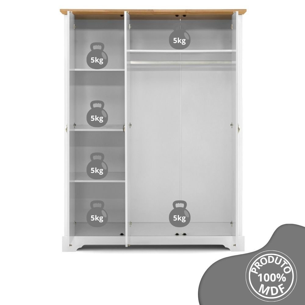 Guarda Roupa Solteiro 3 Portas Toledo Branco