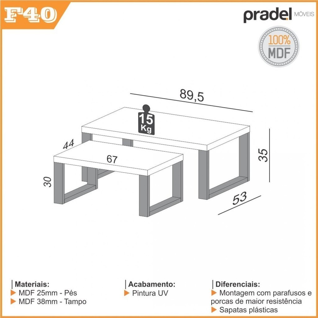 Kit 2 Mesas de Centro Retangulares Industrial