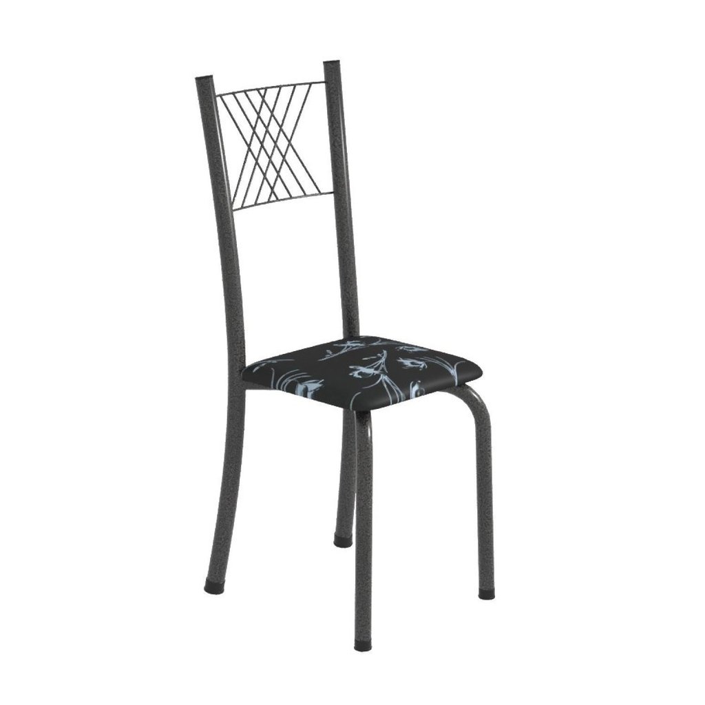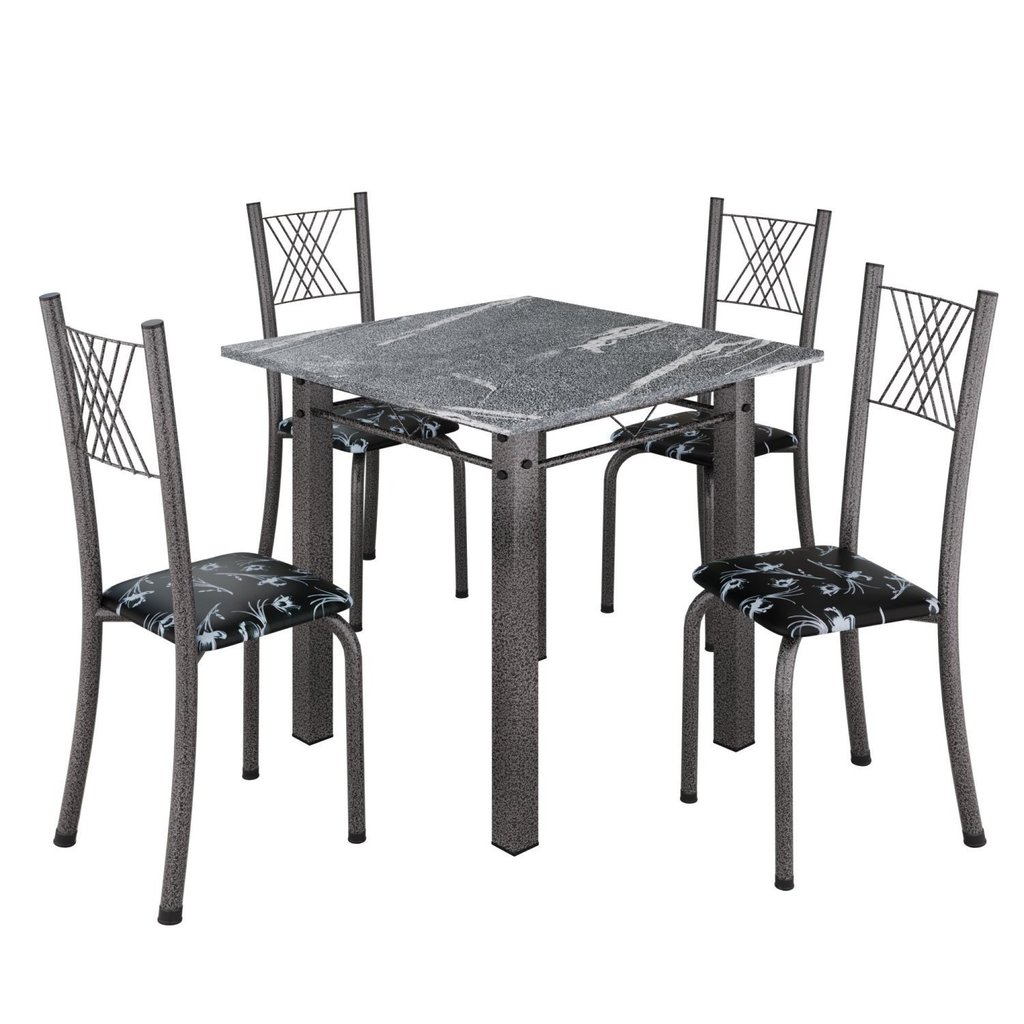 Conjunto de Jantar Mesa 70x70cm Tampo de Granito Topázio com 4 Cadeiras Sara Yescasa Preto Floral/Prata