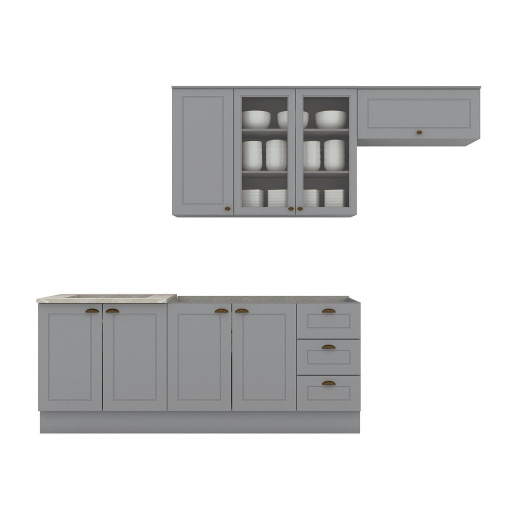 Cozinha Compacta 8 Portas e 3 Gavetas Emily Cinza/Calcare