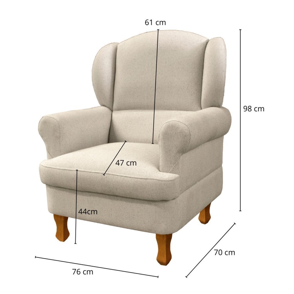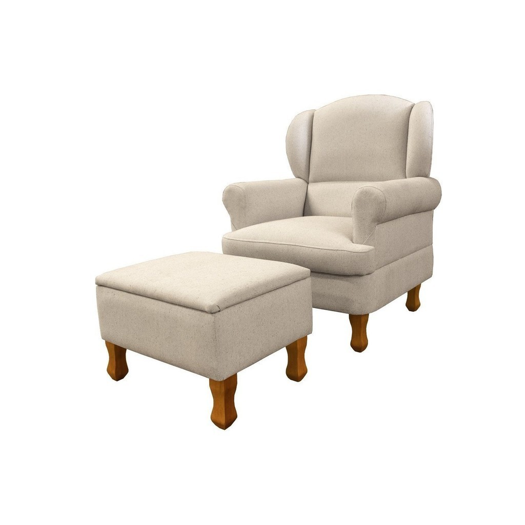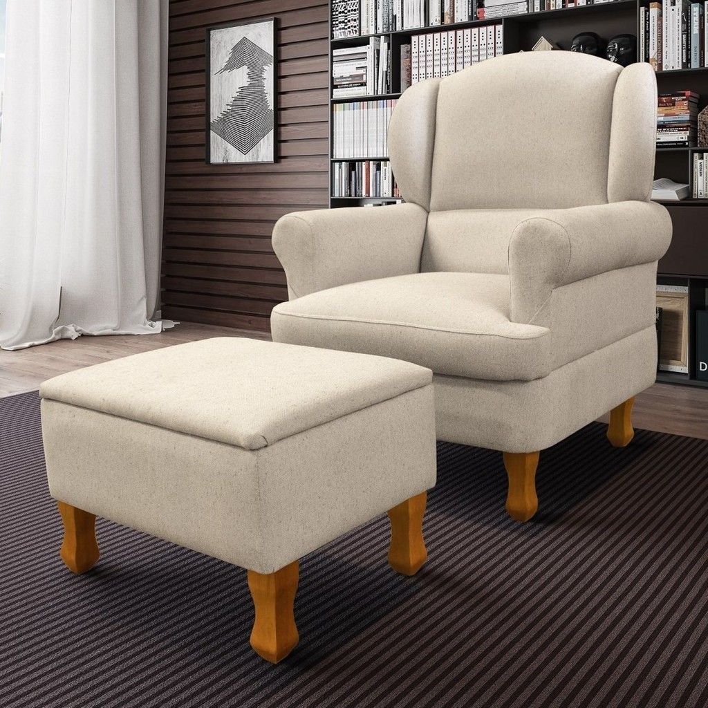 Poltrona para Amamentação em Linho com Pés em Madeira e Puff Baú Sabrina