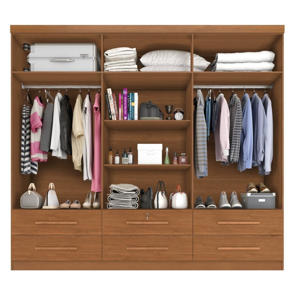 Guarda Roupa Casal Maximus Plus 6 Portas de Bater 6 Gavetas Cinamomo