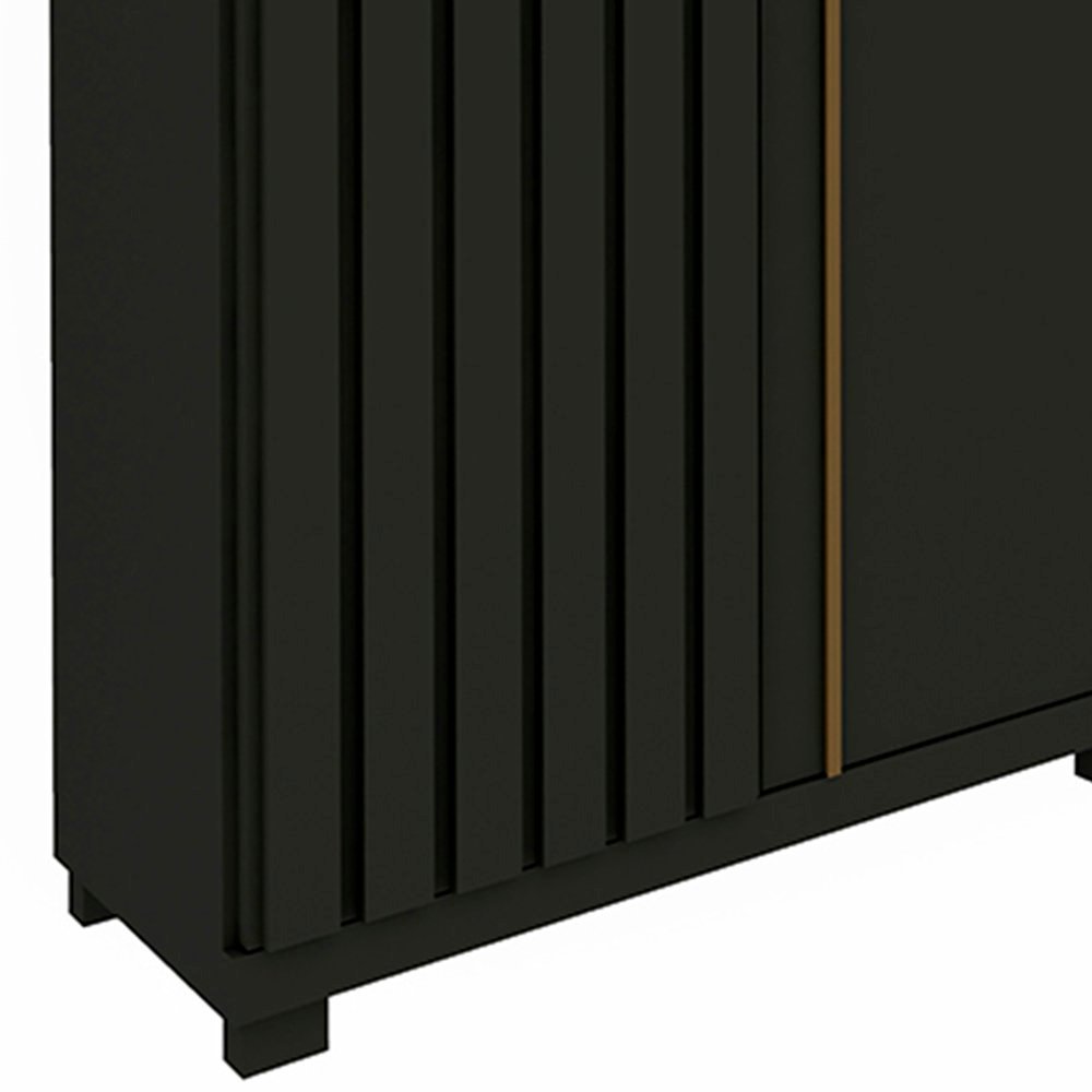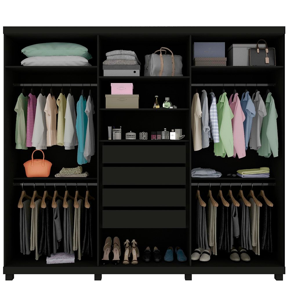 Guarda Roupa Casal Ripado 6 Portas 4 Gavetas com Espelho Absolut New 100% MDF Grafite/Grafite