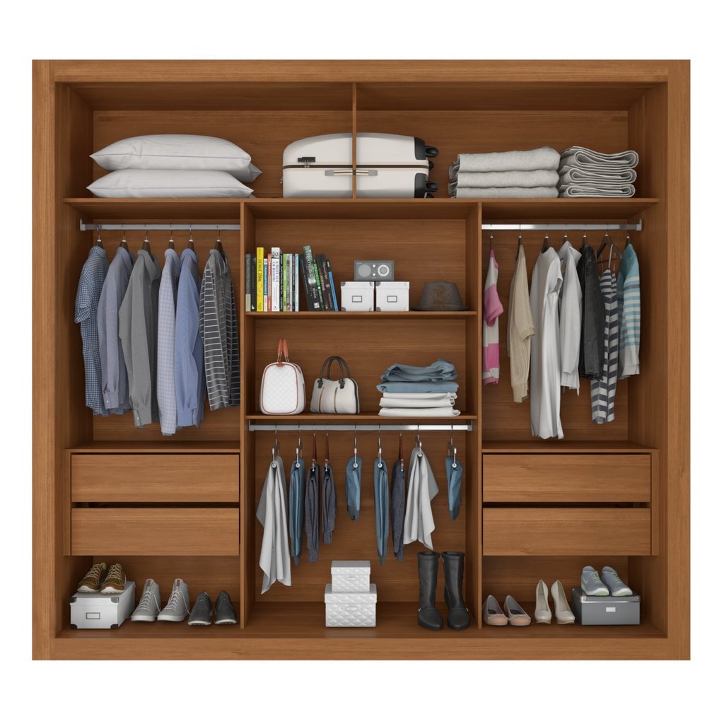 Guarda Roupa Casal Trianon 2 Portas de Correr 4 Gavetas Cinamomo/Areia