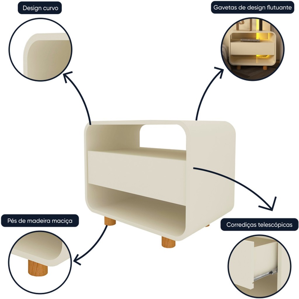 Mesa de Cabeceira 1 Gaveta Innova Moderno 100% MDF Off White