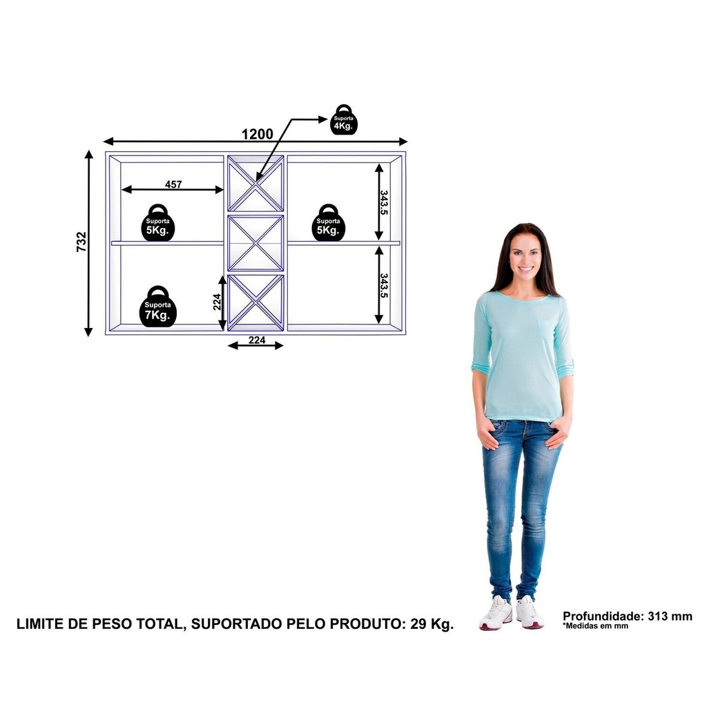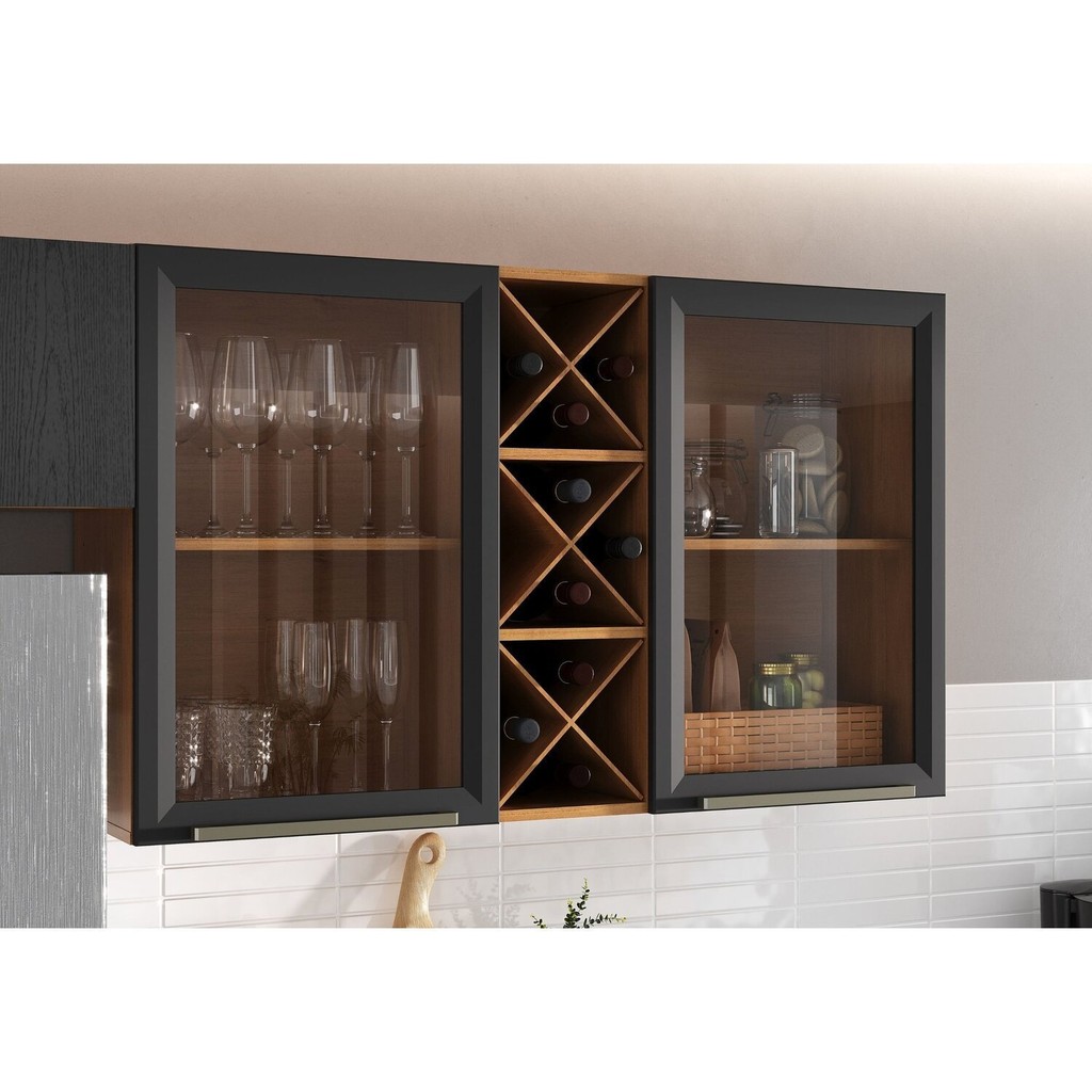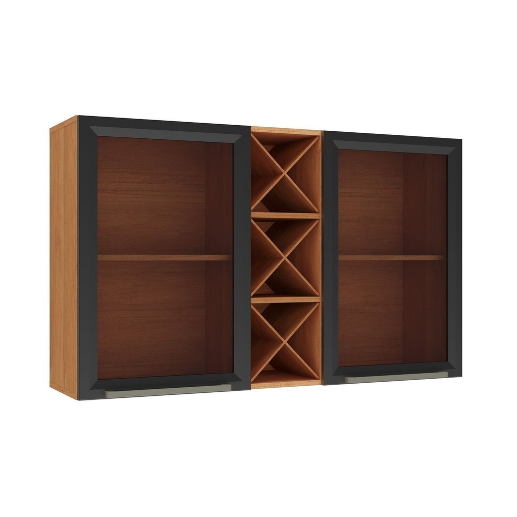 Armário Aéreo 2 Portas 2 Prateleiras Favorita Cinamomo/Preto