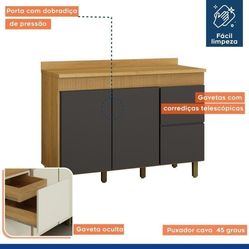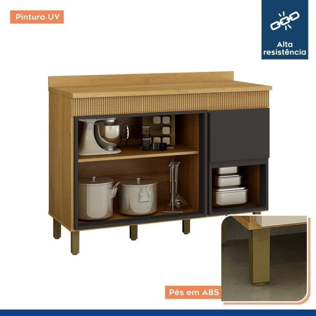 Kit com Balcão para Cozinha 120cm e Balcão para Cozinha 80cm Dakota