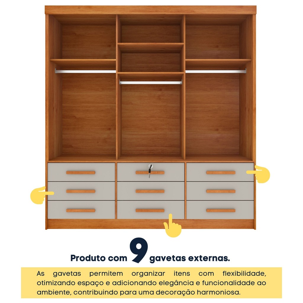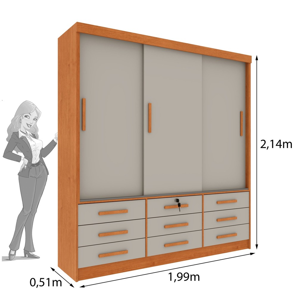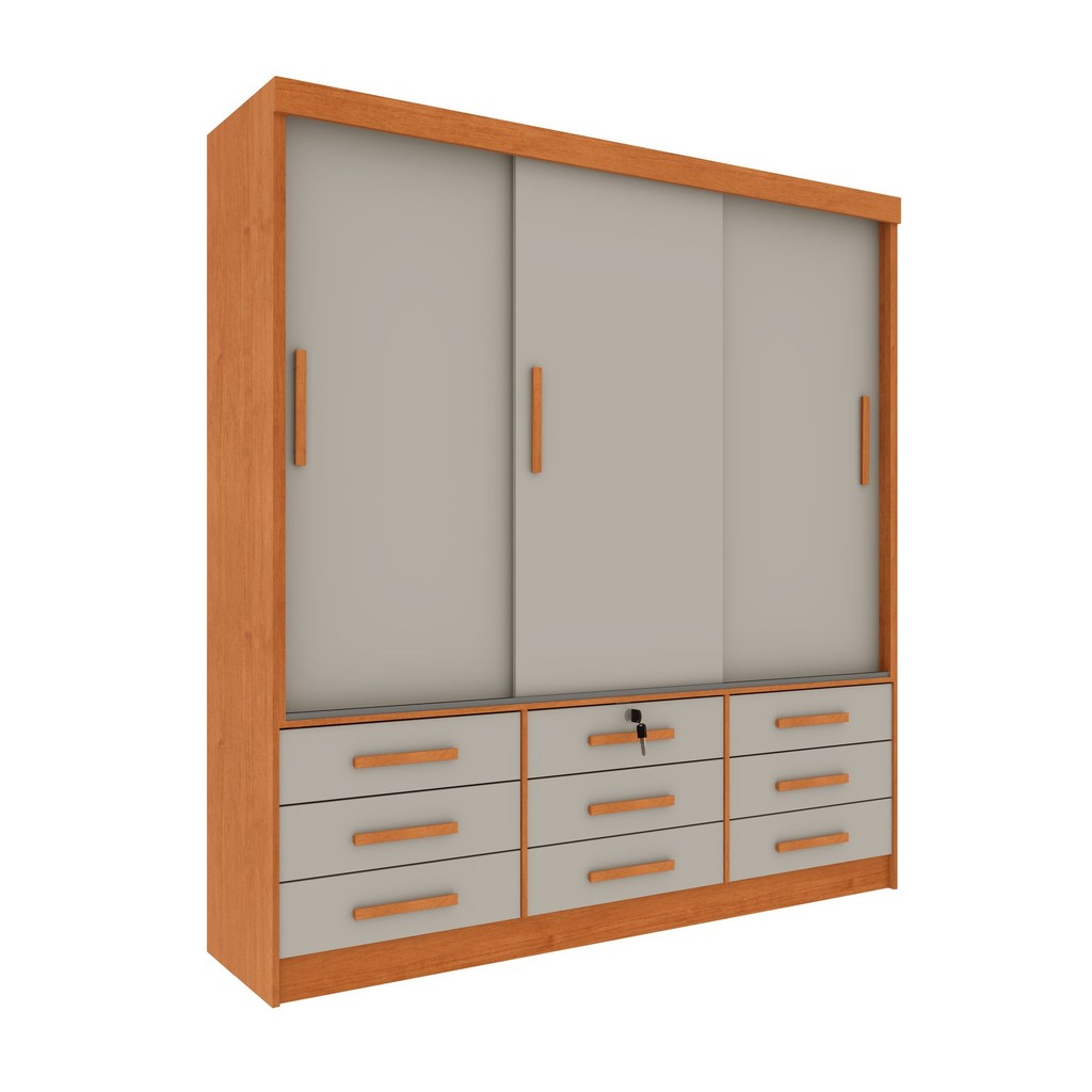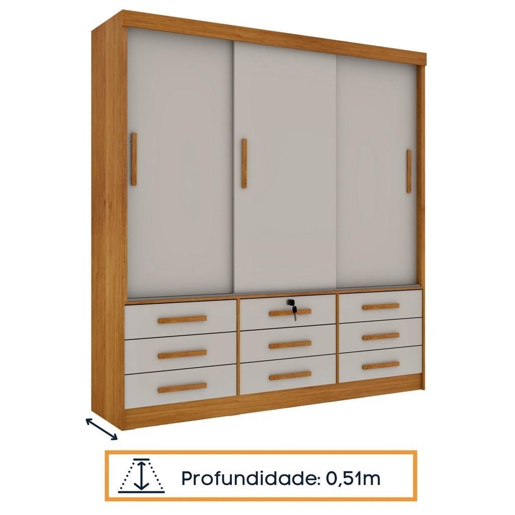 Guarda Roupa Casal 3 Portas 9 Gavetas 199cm Chicago Cinamomo/Off White