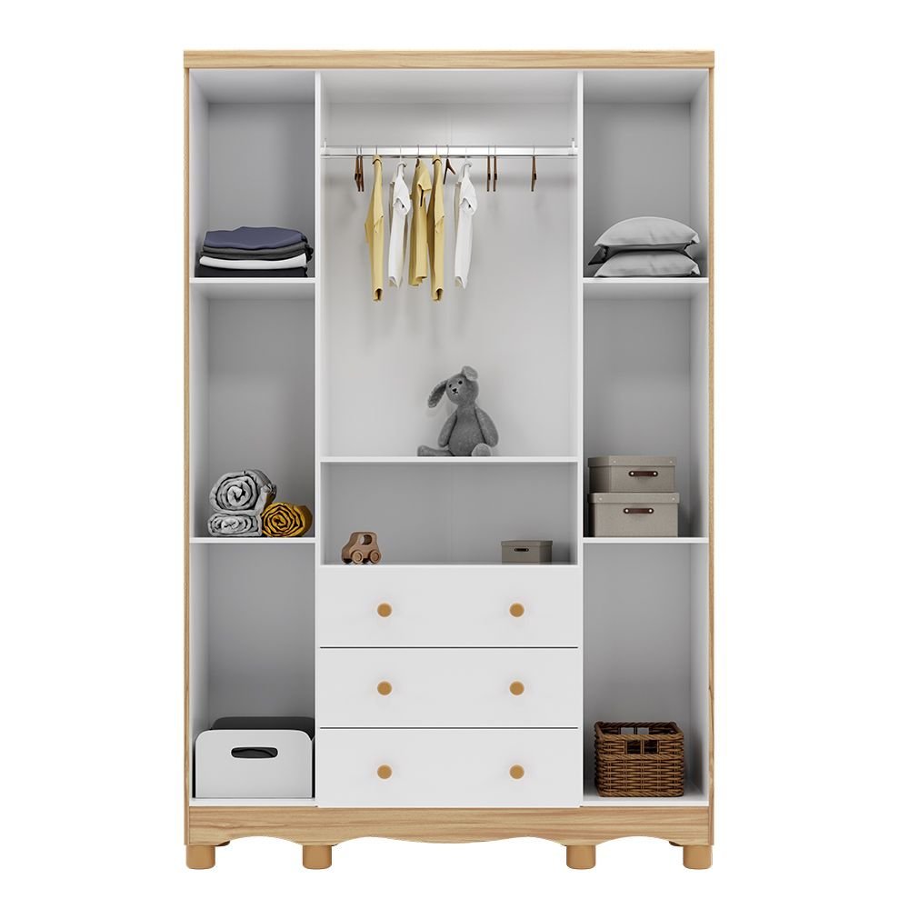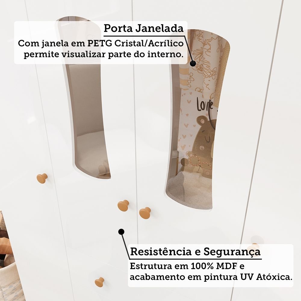 Guarda roupas Infantil 4 Portas com Janela e 3 Gavetas 100% MDF Lana Espresso Móveis Branco Brilho/Amêndoa