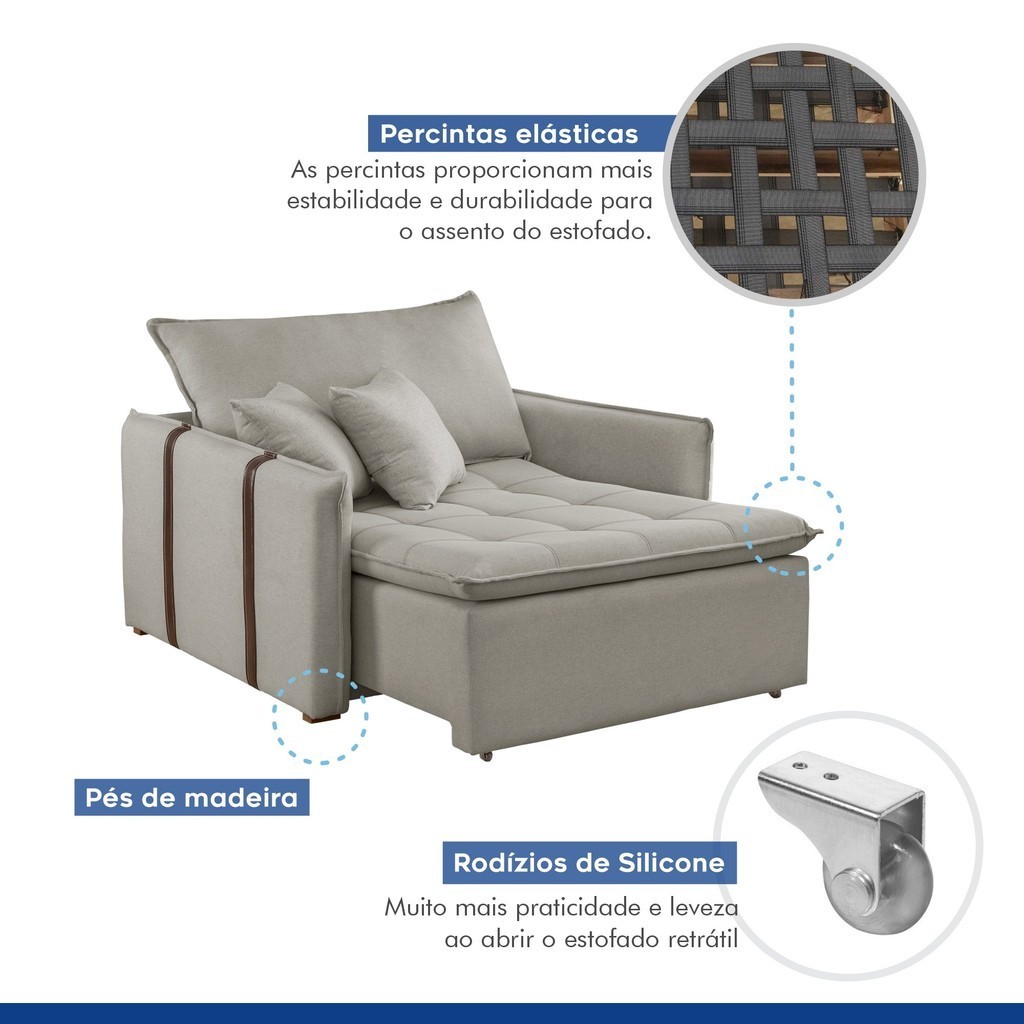 Poltrona Cama 110cm Detroid Yescasa Linho Gelo