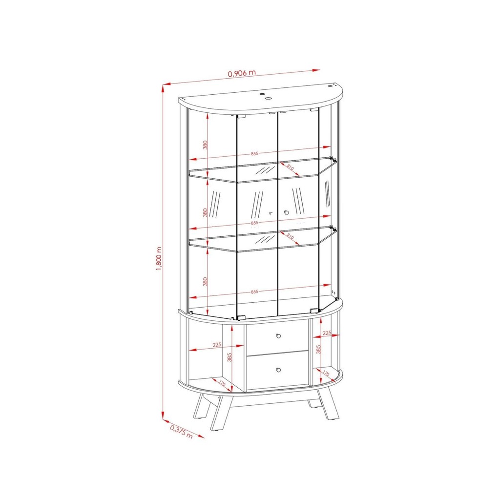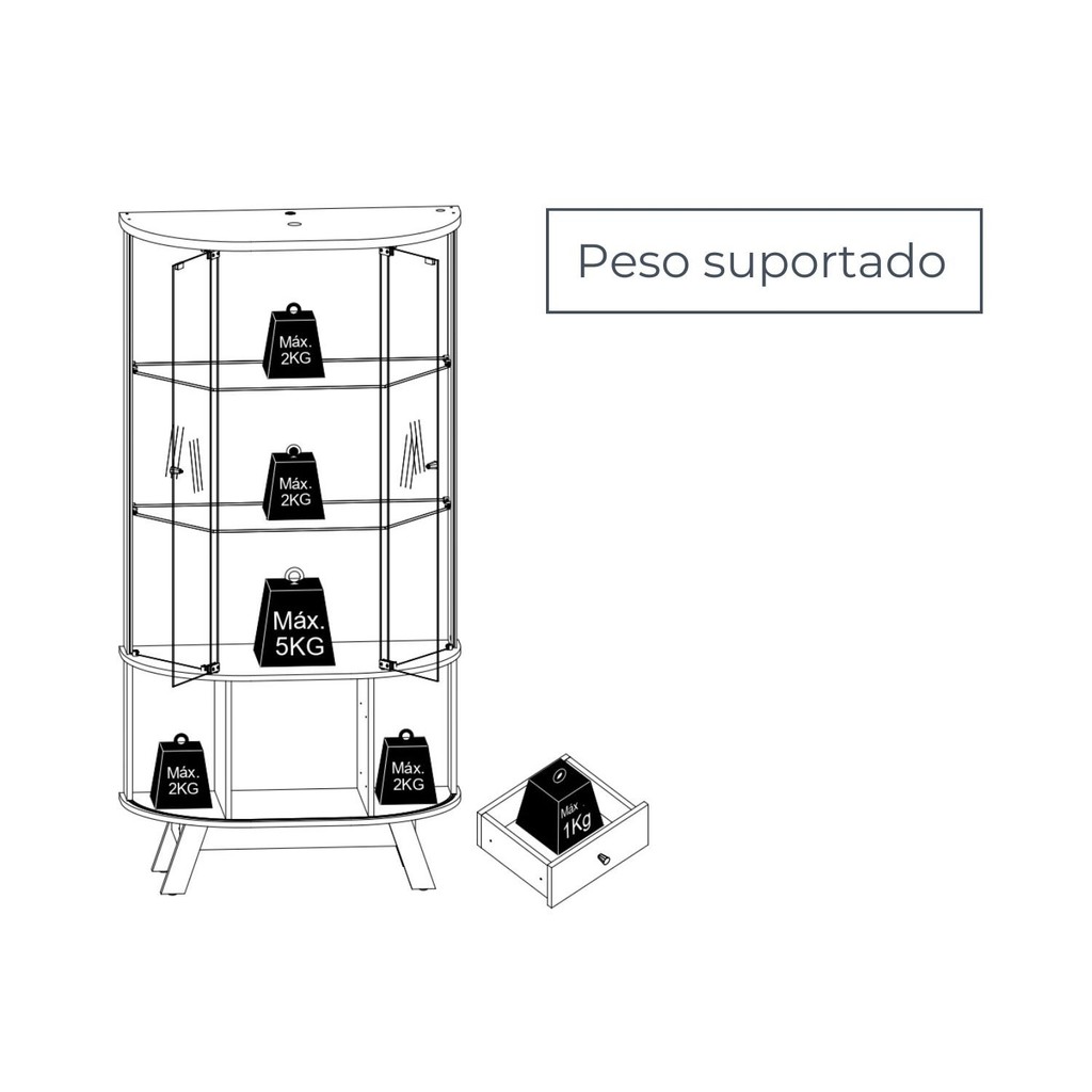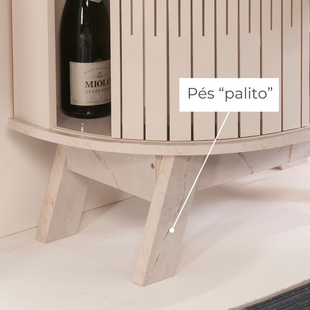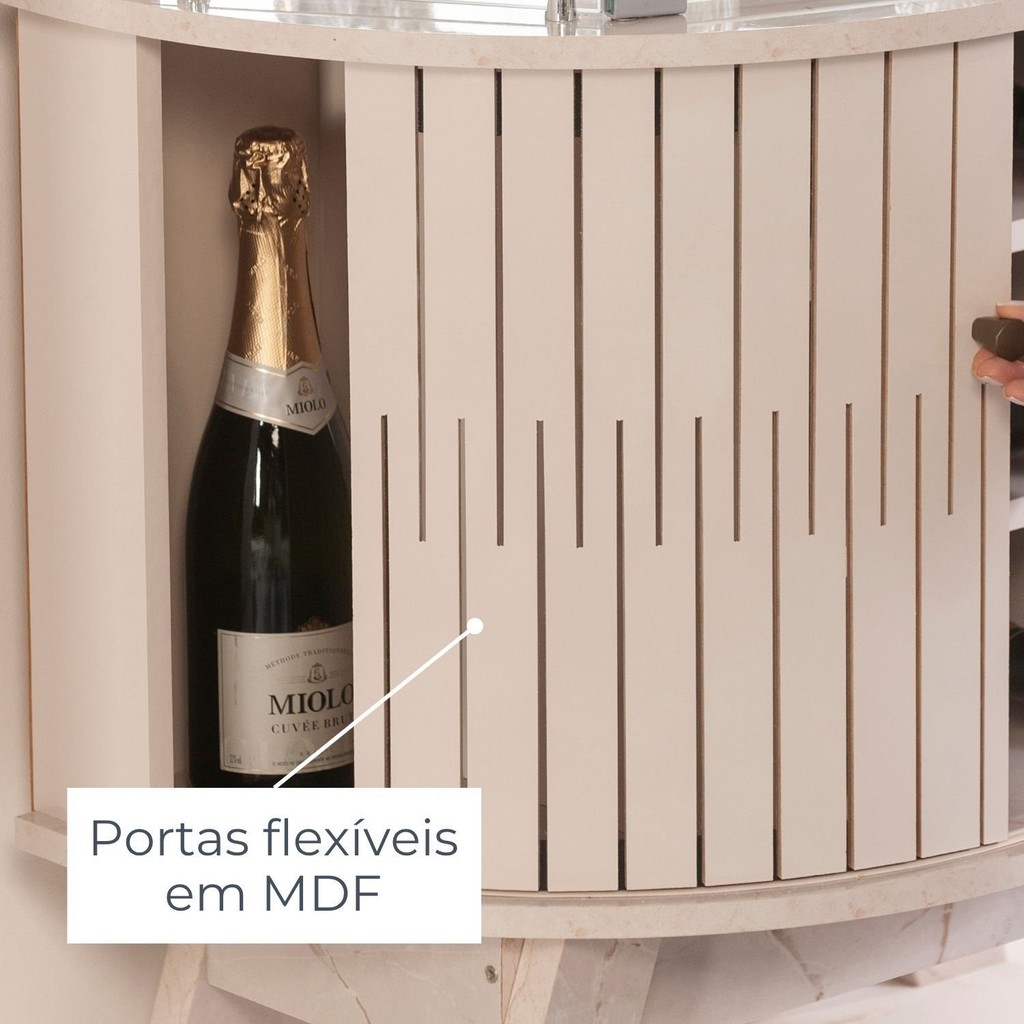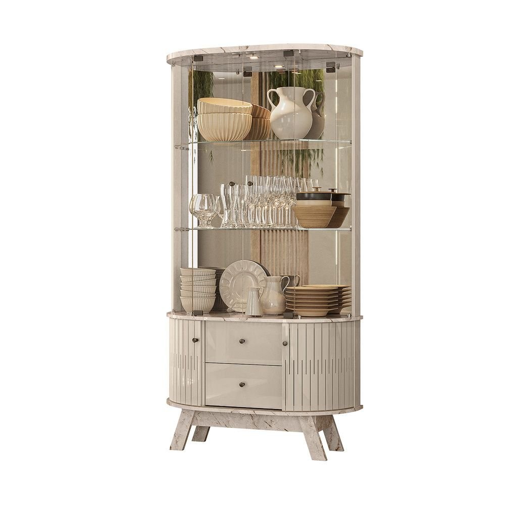Cristaleira para Sala de Jantar 4 Portas Vidro Curvo com Espelho Led 2 Gavetas Moss Calacata/Offwhite