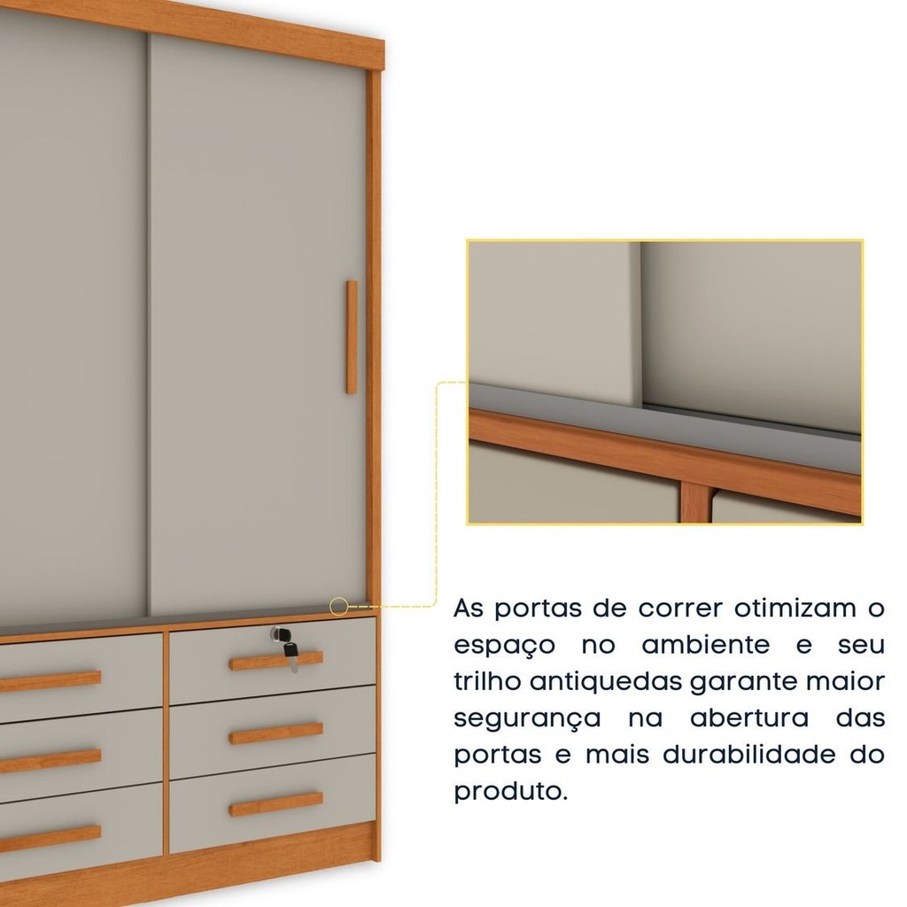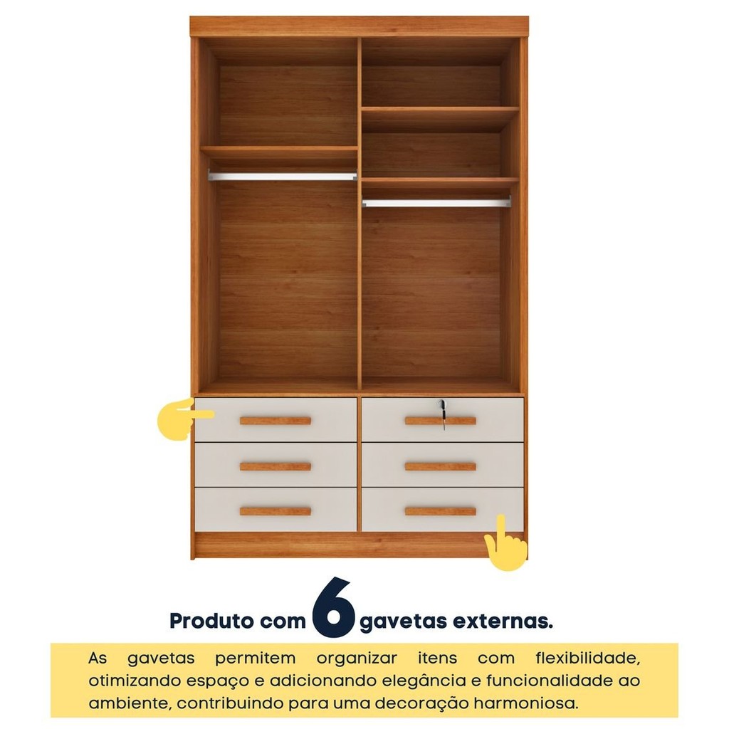 Guarda Roupa Solteiro com Espelho 2 Portas 6 Gavetas 133cm Chicago Cinamomo/Off White