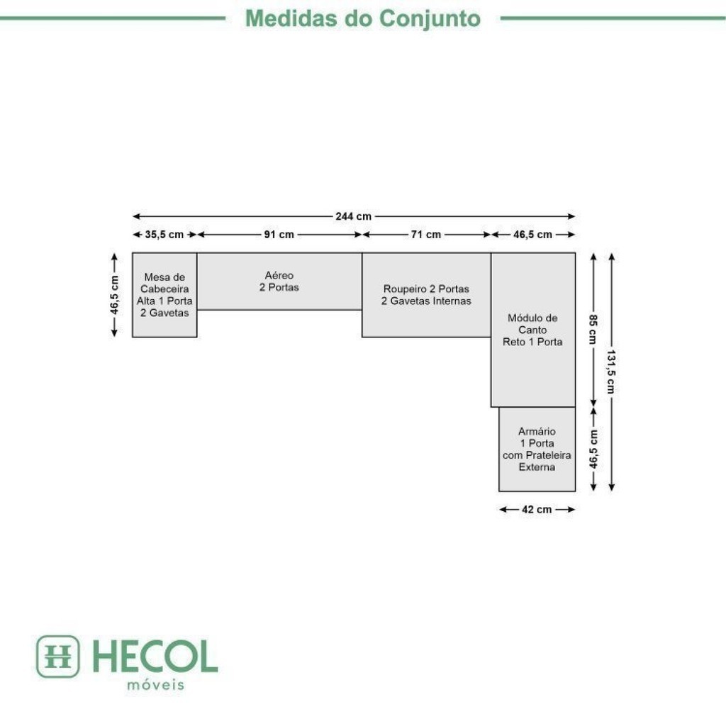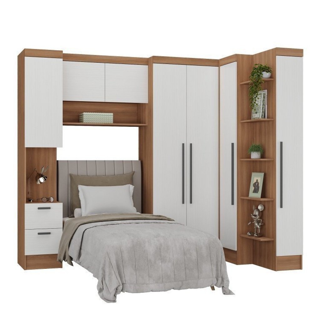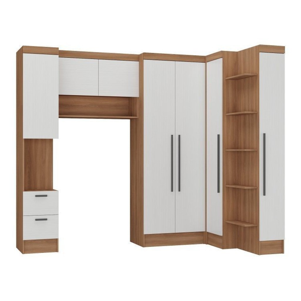 Guarda-Roupa Modulado 7 Portas 4 Gavetas 5 Peças Branco/Nogal
