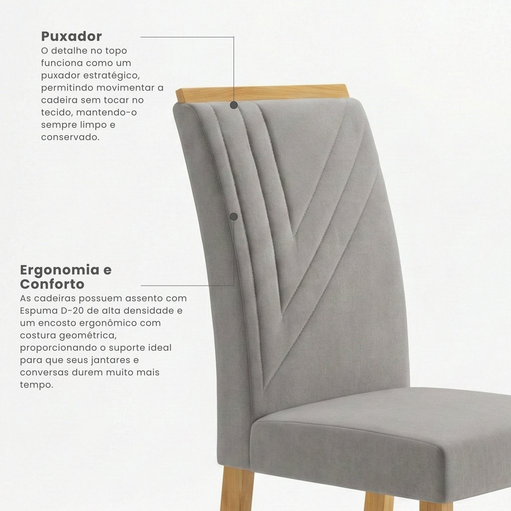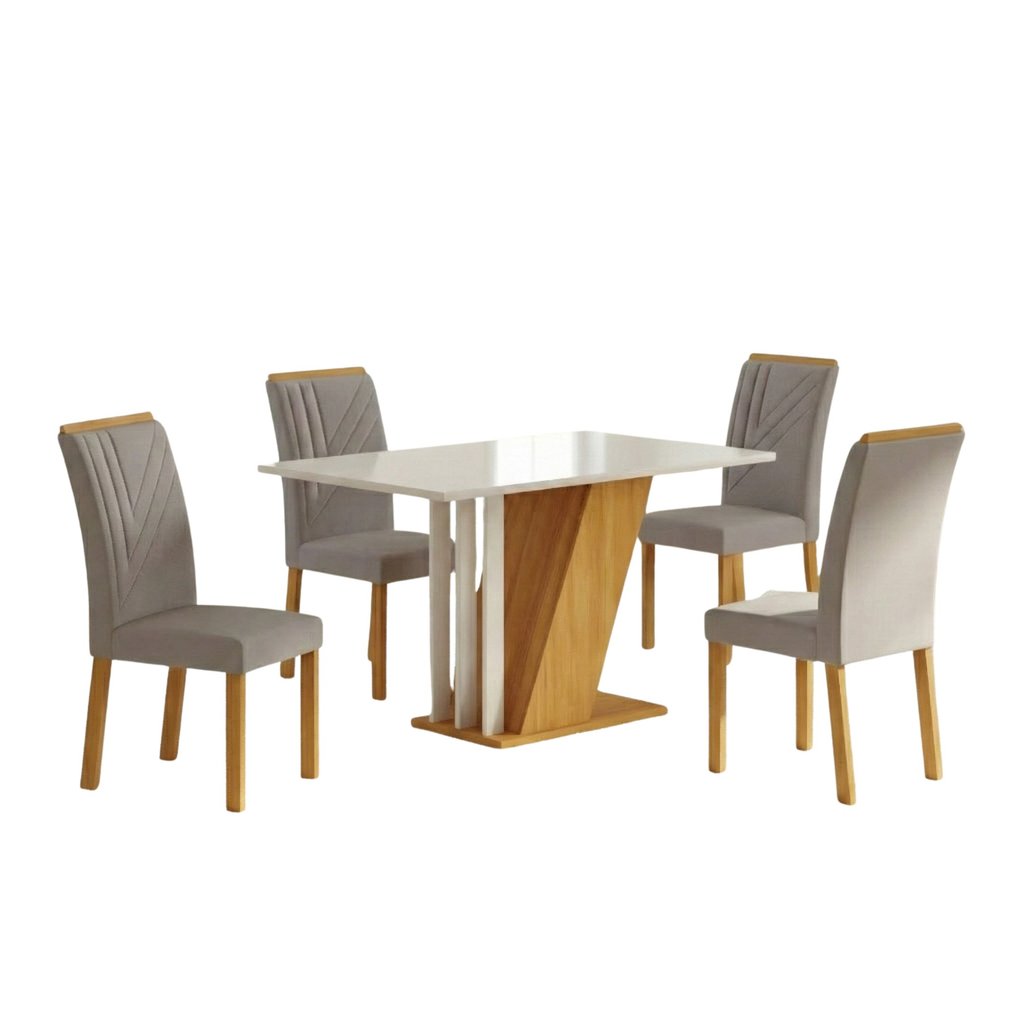 Conjunto Sala de Jantar Mesa Tampo MDF/MDP com 4 Cadeiras Miami Yescasa Freijo/OffWhite/Prata