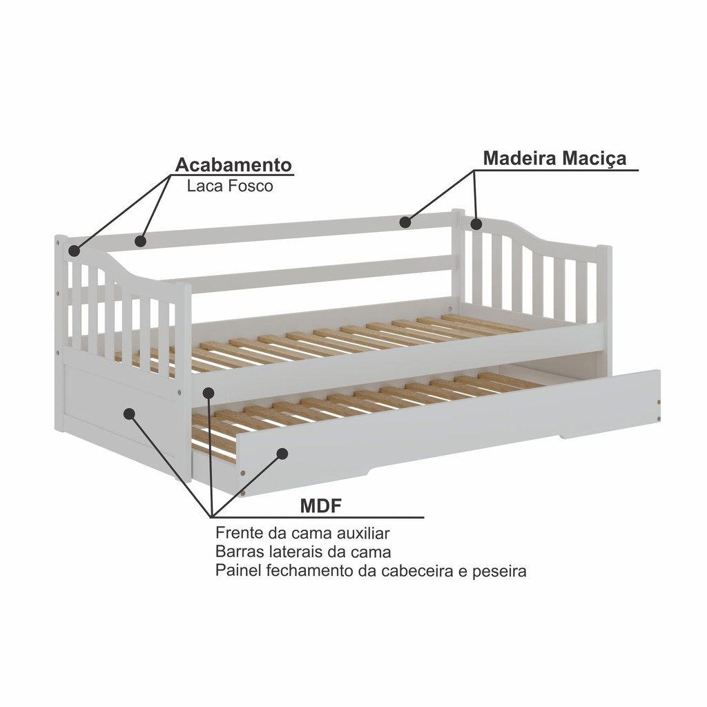 Bicama Infantil em Madeira Maciça/MDF American Branco