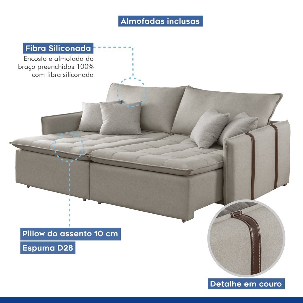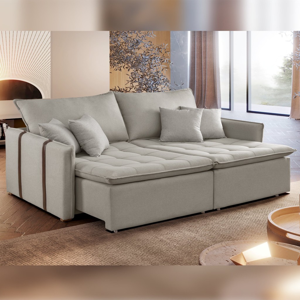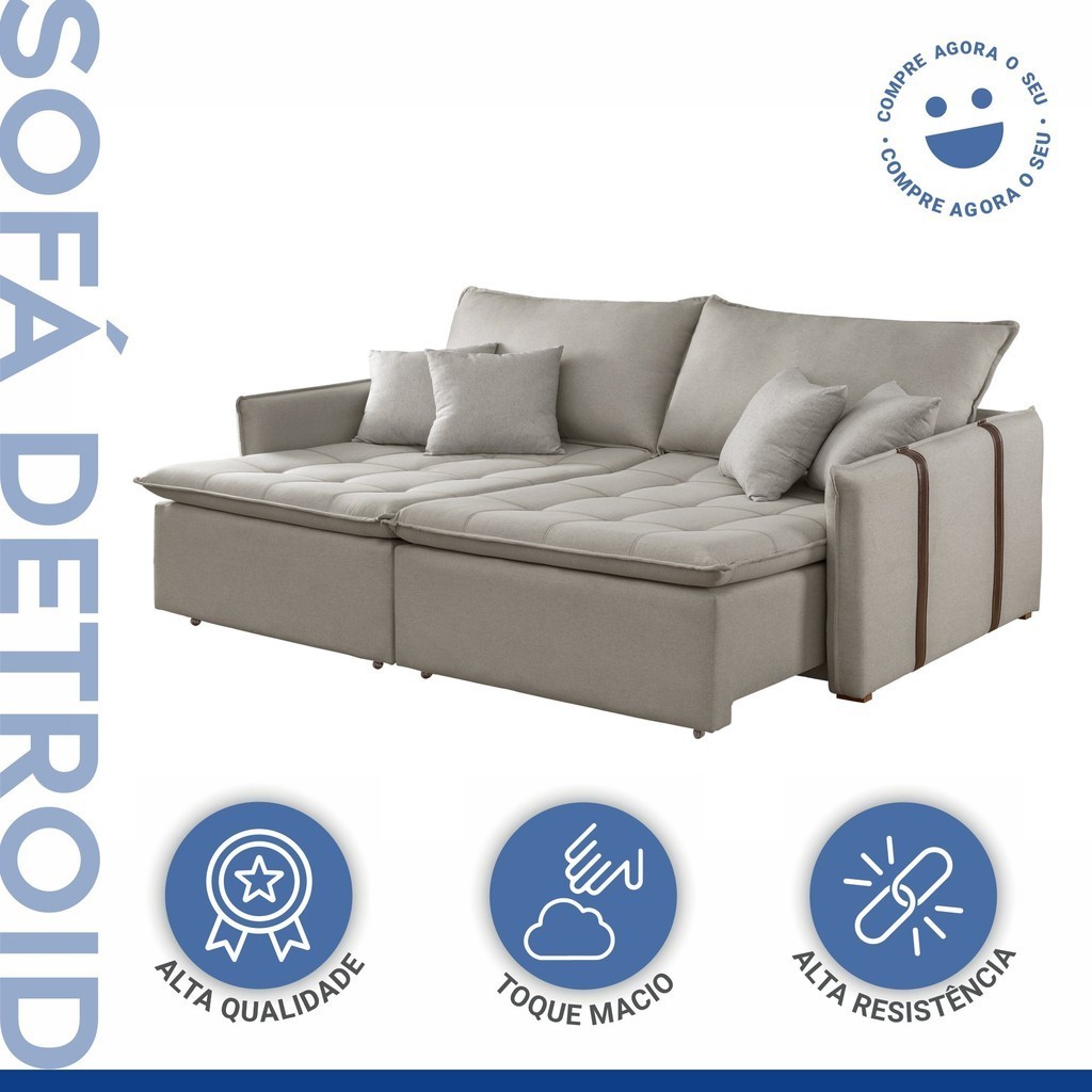 Sofá Cama 3 Lugares Retrátil 200cm Detroid Yescasa Linho Cinza Linho Gelo