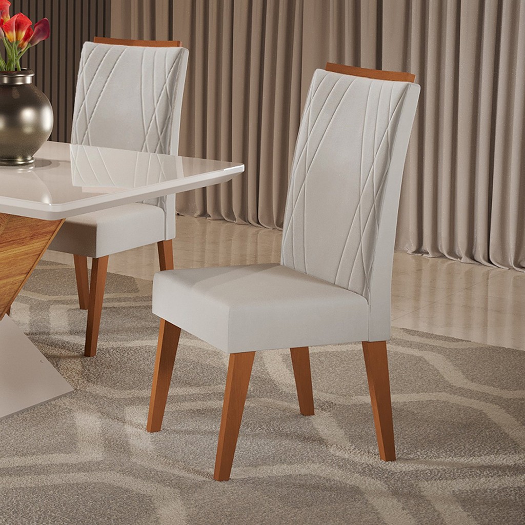 Kit 6 Cadeiras de Jantar Estofadas em Madeira Maciça Vegas Yescasa Marfim