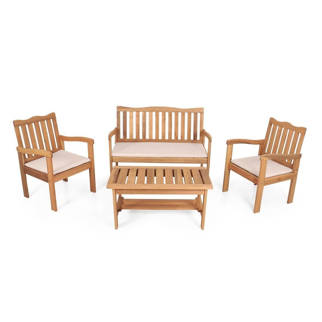 Conjunto para Jardim de Madeira Eucalipto 4 Peças Estofado Nature Yescasa Nature/Branco