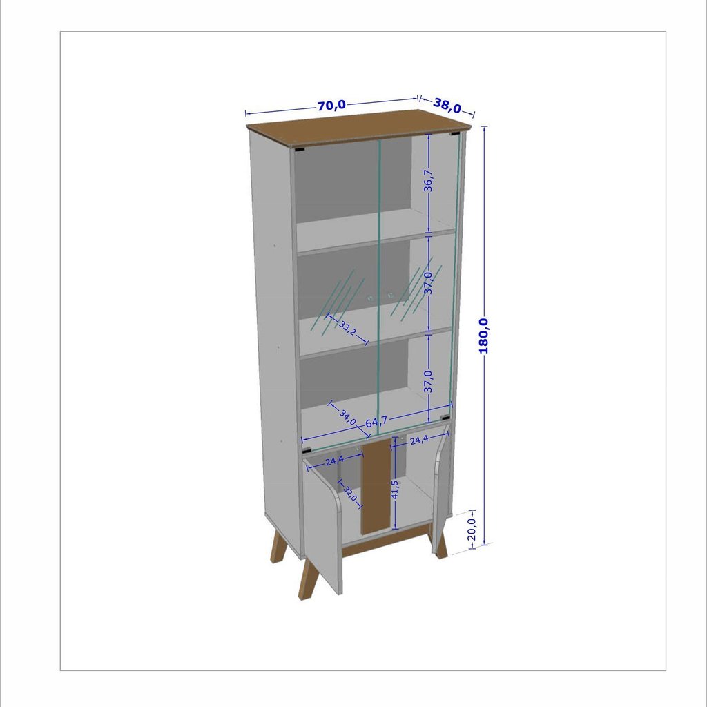 Cristaleira Retrô Portas de Vidro Fecho Magnético Pés Madeira Madri Off White/Cinamomo