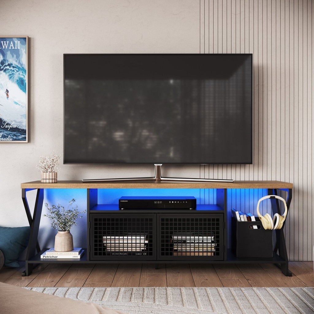 Rack para Tv até 60 Polegadas Industrial com Iluminação em Led RGB Preto