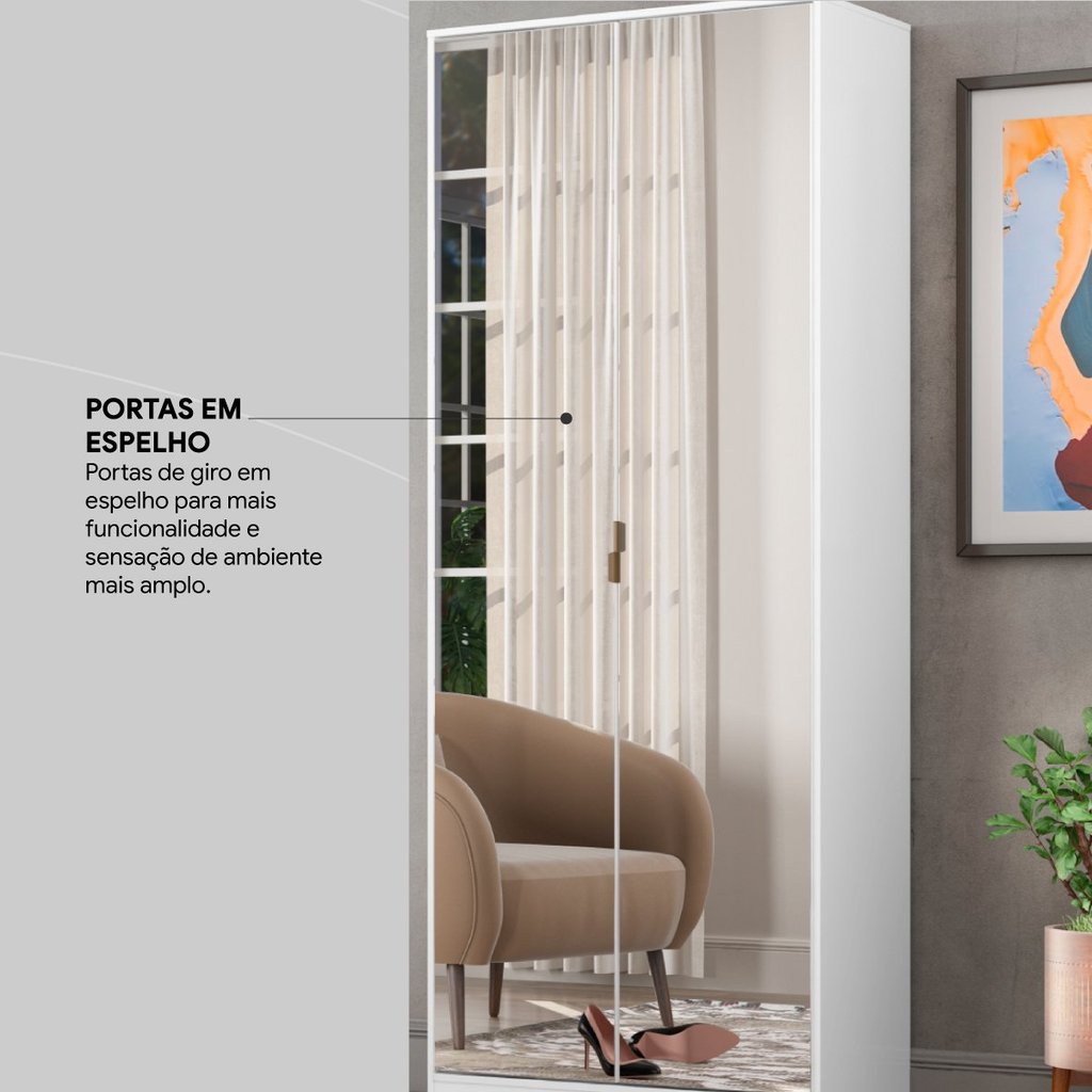 Sapateira com Espelho 1 Gaveta 2 Portas Grife Branca