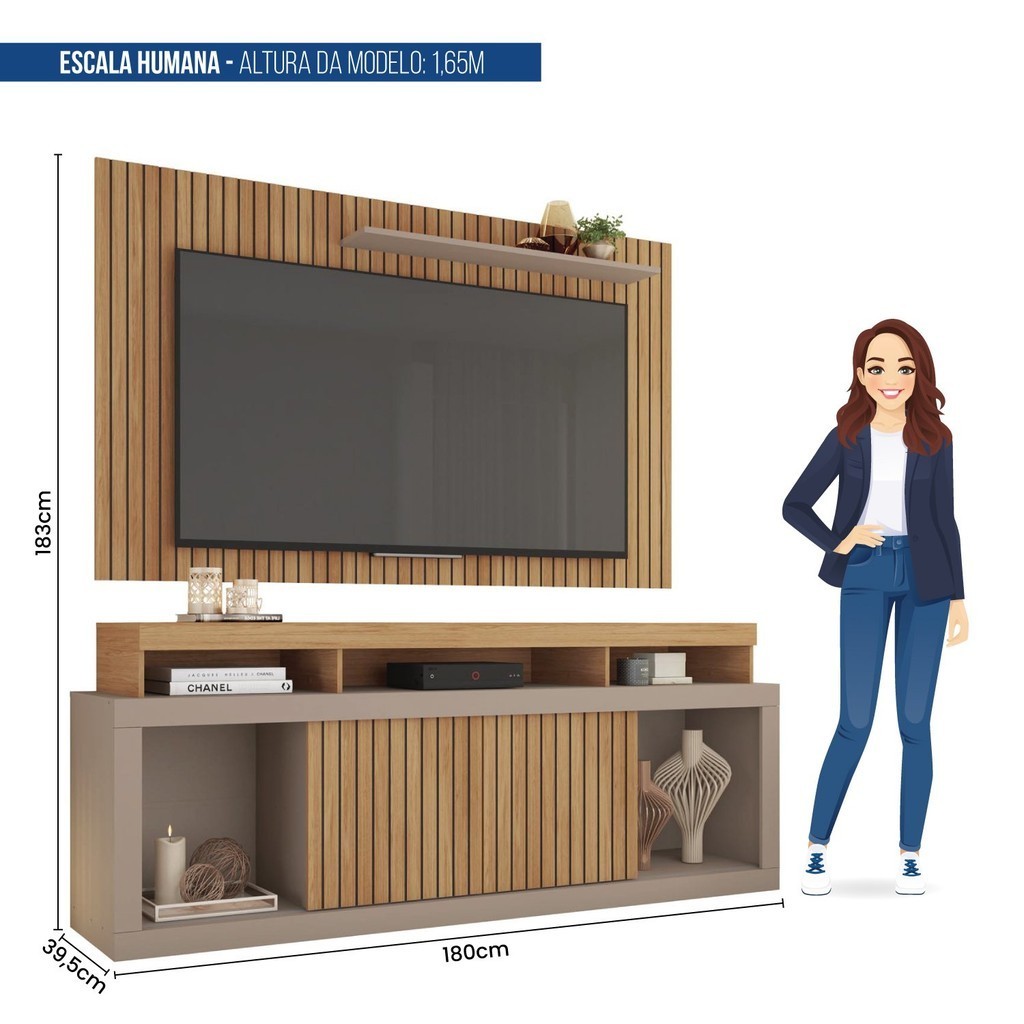 Rack com Painel para TV Até 65 Polegadas com Ripado Esmeralda Buriti/Fendi