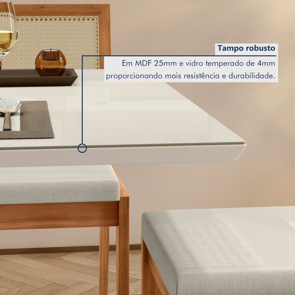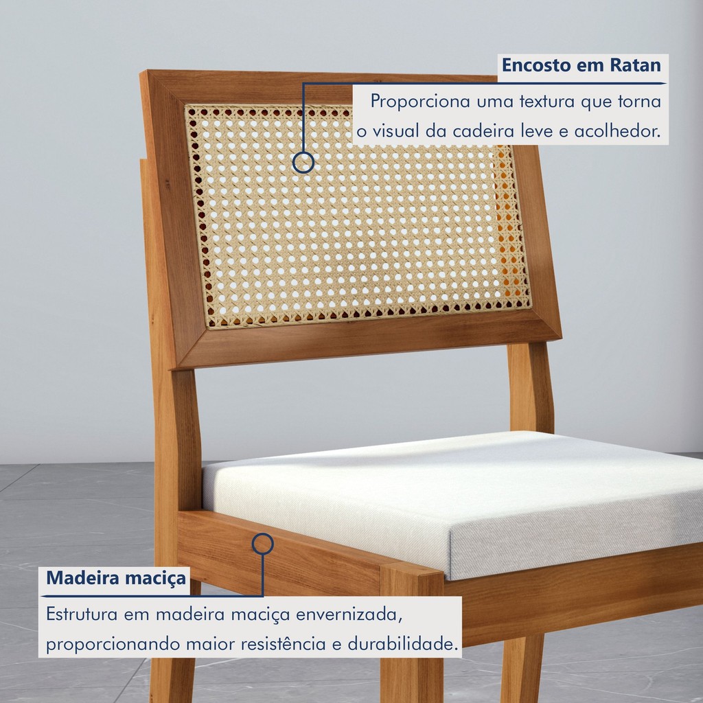 Conjunto Sala de Jantar Mesa Donna com 4 Cadeiras Rainha em Madeira Maciça