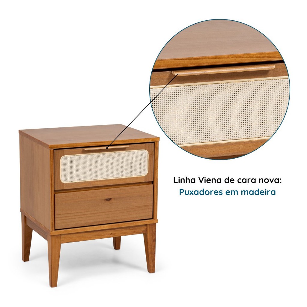 Mesa de Cabeceira 2 Gavetas Madeira Maciça Viena 1