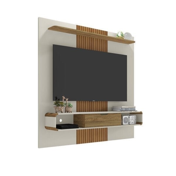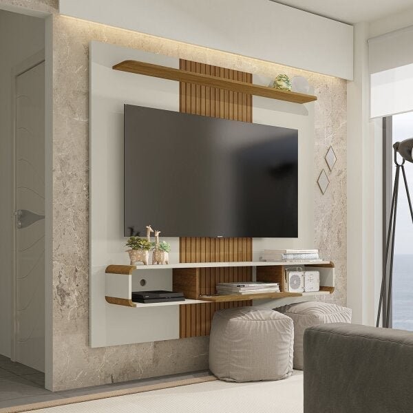 Painel para TV até 65 Polegadas Lisboa Off White/Cinamomo/Ripado
