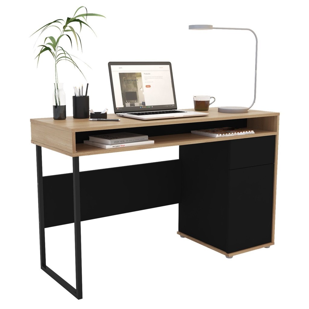 Escrivaninha Mesa Escritório 120cm 1 Porta 1 Gaveta Chicago Aveiro/Preto