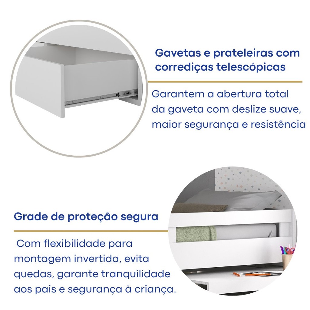 Beliche Infantil com Escrivaninha 2 Gavetas MDF