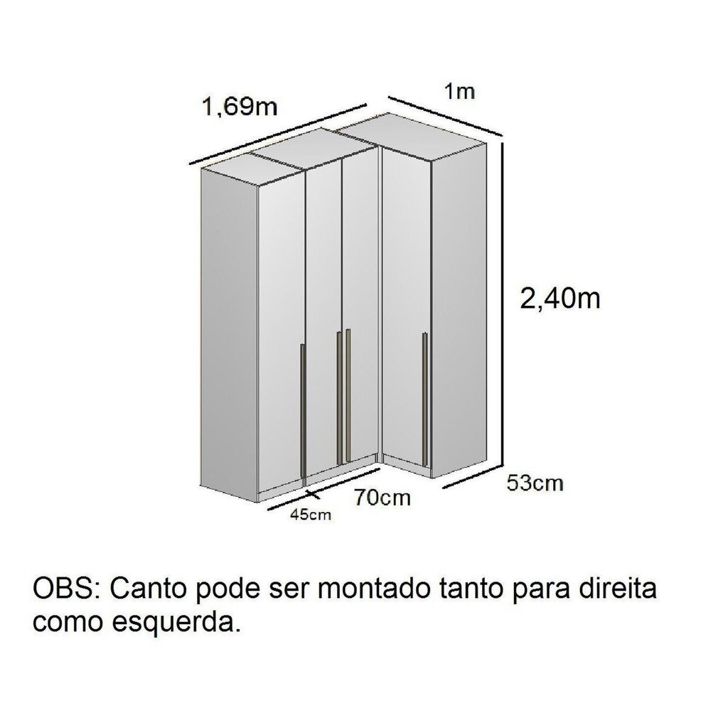 Guarda Roupa Modulado de Canto Reto 4 Portas com Espelho Branco Altezza Trend Branco