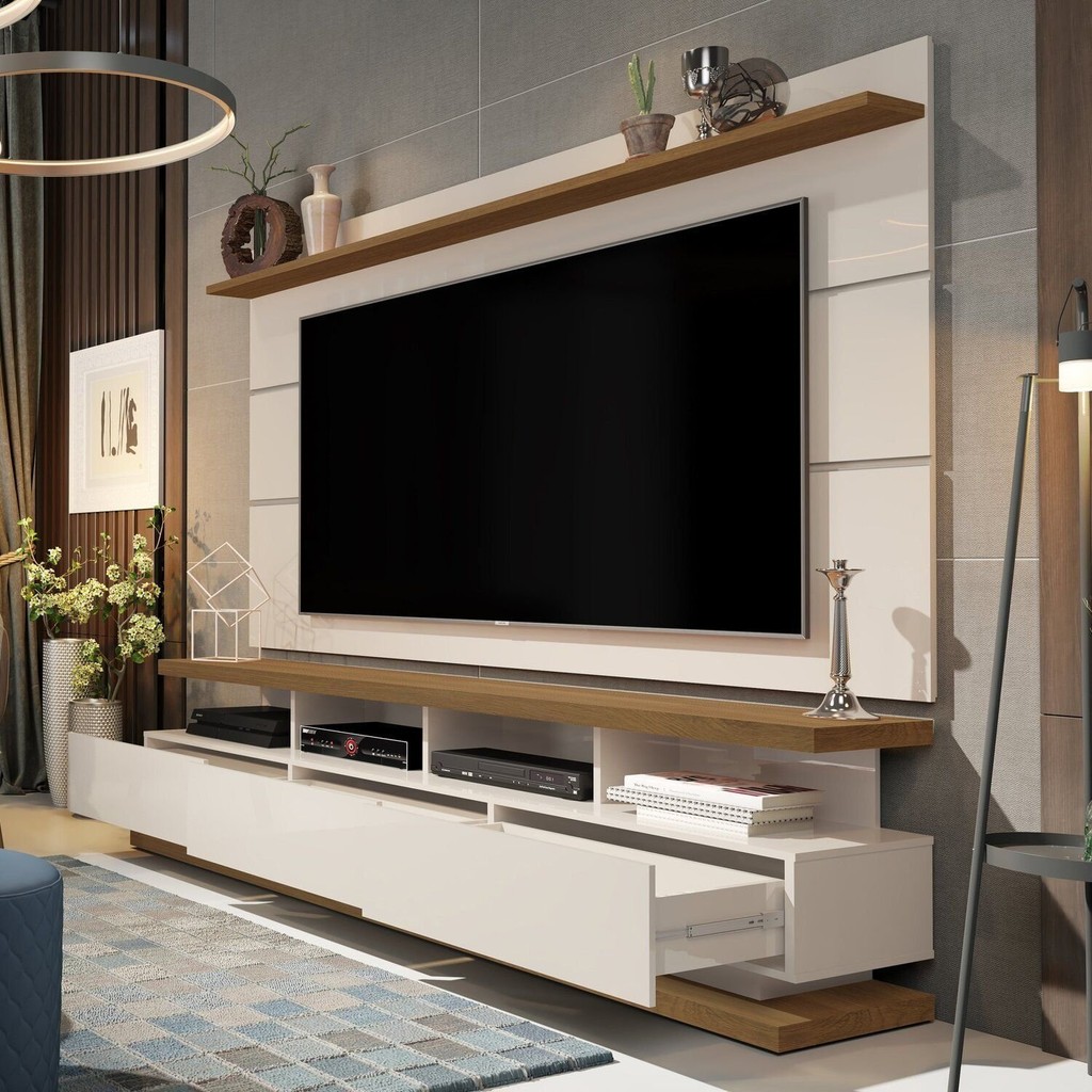 Rack com Painel para TV até 72 Polegadas com Rodízios Off White/Freijó Vivare Off White/Freijó