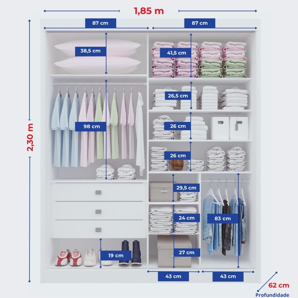 Guarda-roupa Mdf 2 Portas de Correr 3 Gavetas Milos Branco