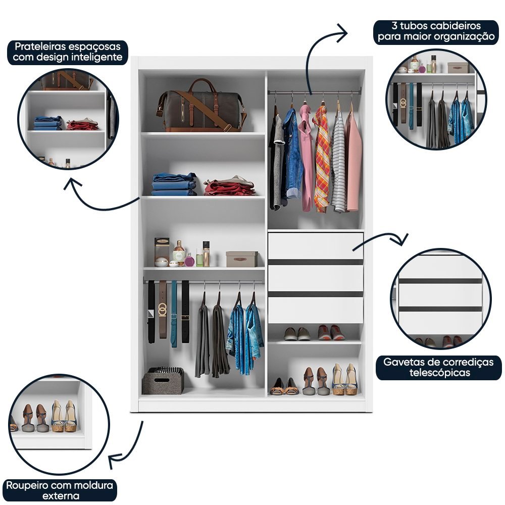 Guarda-Roupa Solteiro 2 Portas 1 Porta Espelhada Royale 100% MDF Não