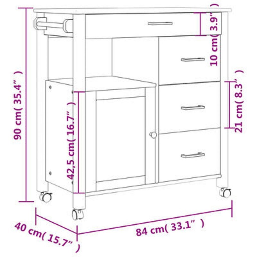 Carrinho de Churrasco 1+3 Gavetas+1 Porta 100 % Madeira Maçica