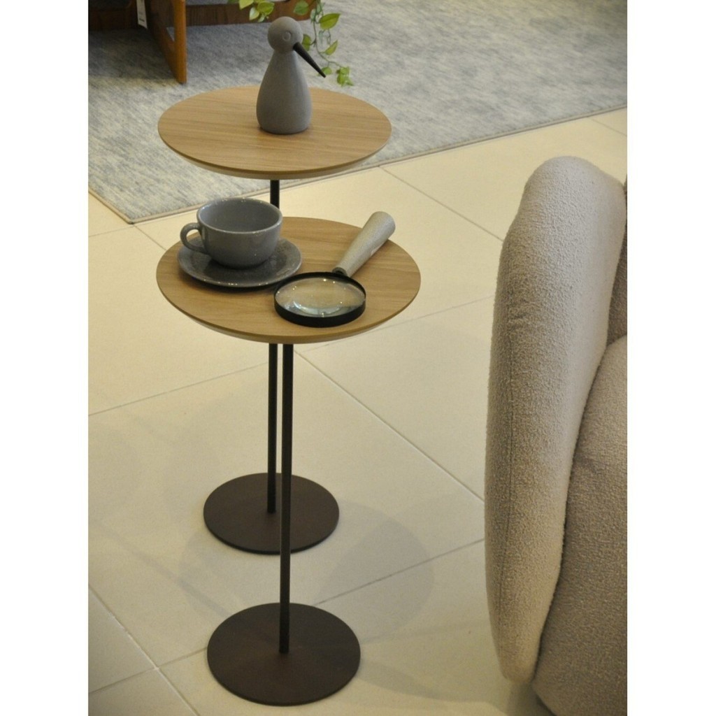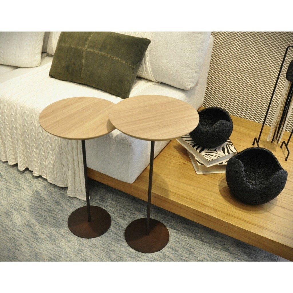 Kit 2 Mesas Laterais KARLA - BAIXA / MÉDIA, tampo redondo Itapuã e base Aço Corten.