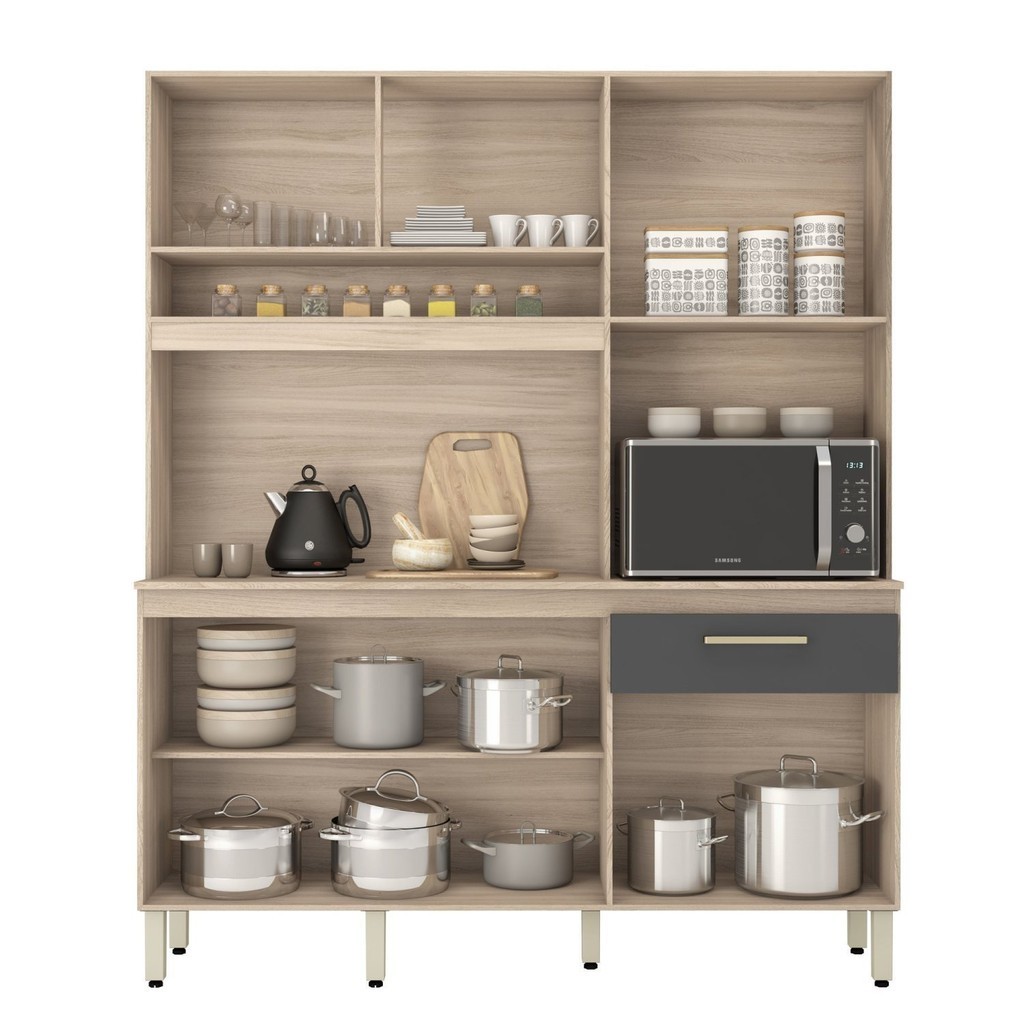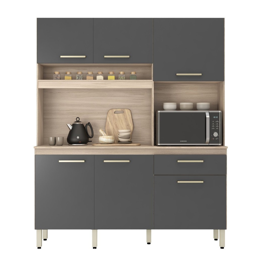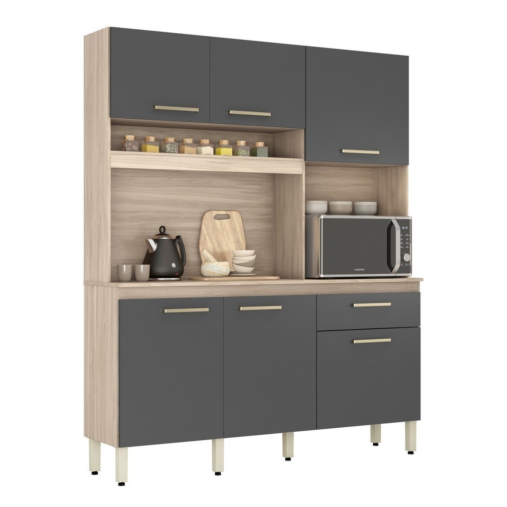 Cozinha Compacta 6 Portas 1 Gaveta Alamo Avena/Grafito