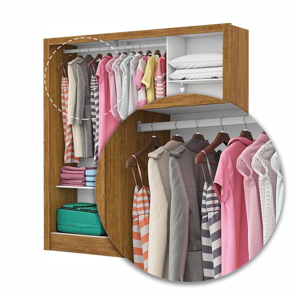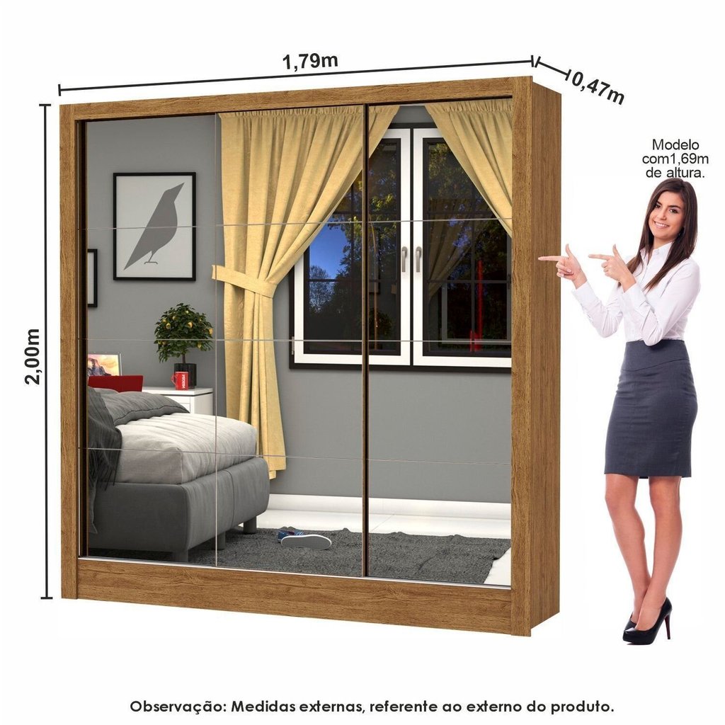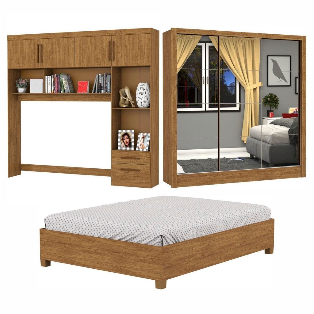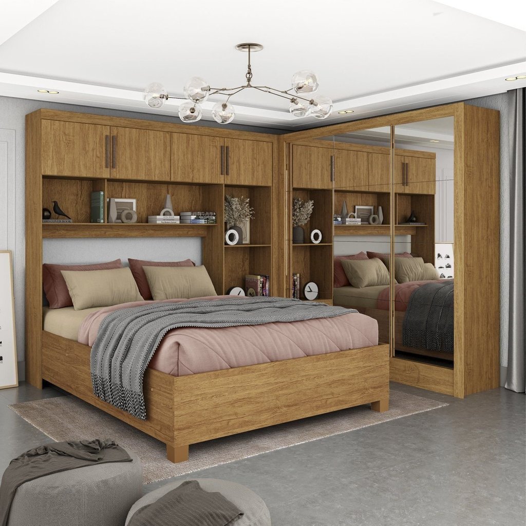 Guarda-roupa Casal Modulado 4 Portas com Cama Santiago 3 Portas Premium 5 Gaveta com Espelho Cinamomo
