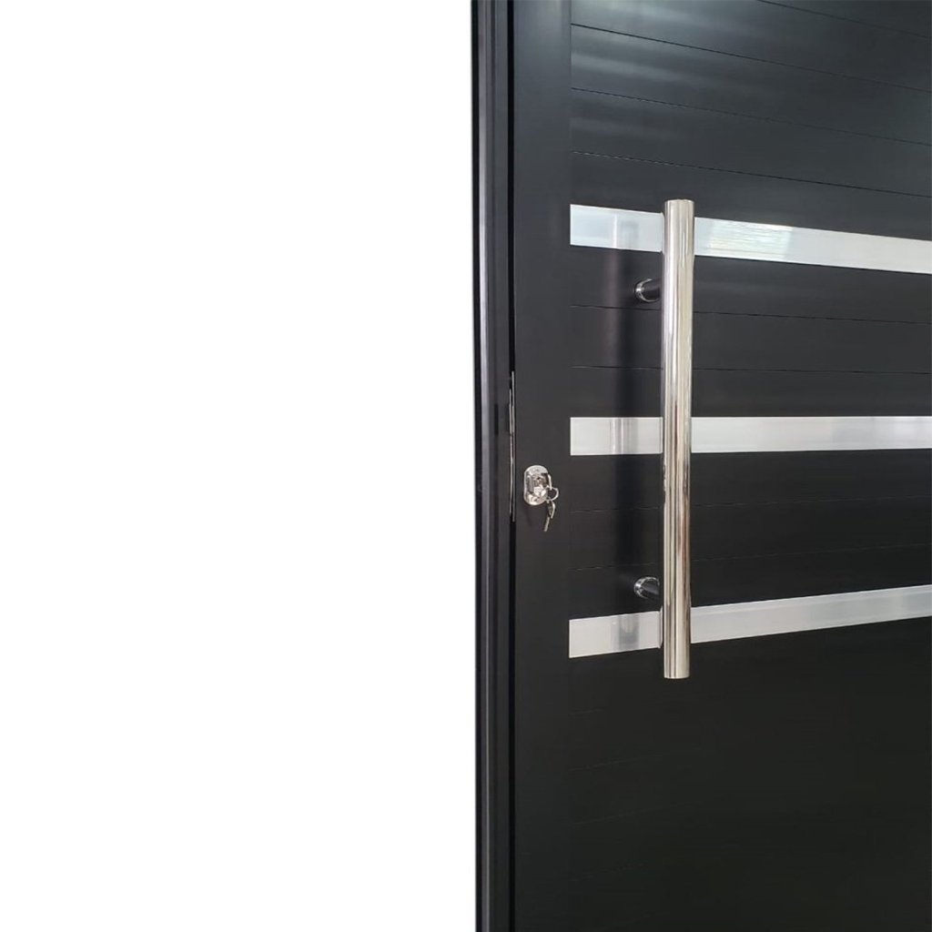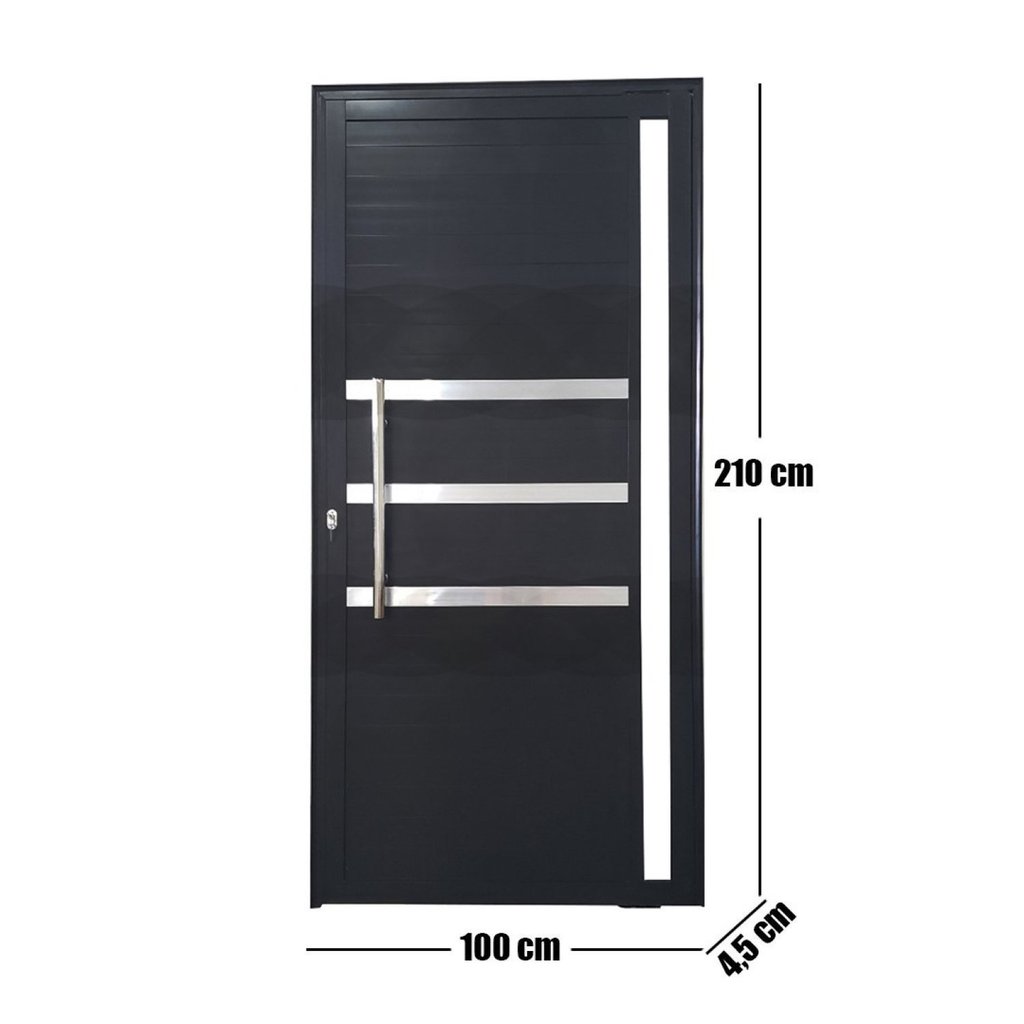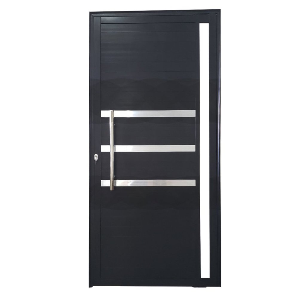 Porta Pivotante de Alumínio 210 X 100cm com Friso e Vidro Veneza Esquadrias Bergamo Abertura Direita Preto
