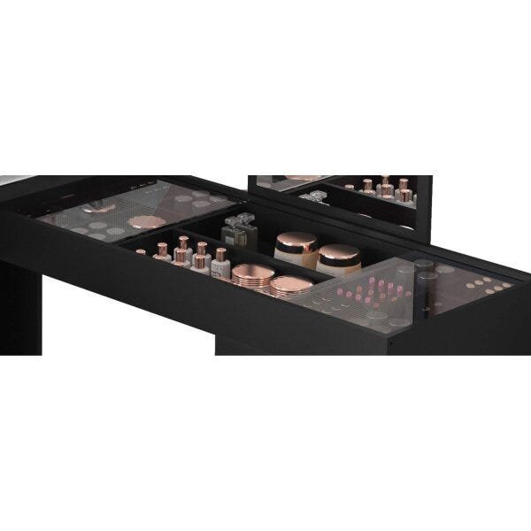 Escrivaninha Mesa Escritório Penteadeira de Canto 136x136cm com Espelho 1 Porta Star Preto